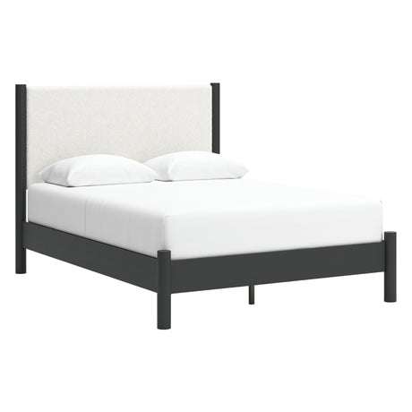 Lit complet en tissu blanc et bois noir Grand / Très grand - Cadmori