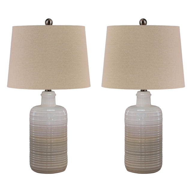 L’ensemble de 2 lampes de table Marnina L121854 de Ashley charme par son élégance naturelle et son design harmonieux. Sa base en céramique émaillée, dans de douces nuances de taupe et de blanc, apporte une touche apaisante et raffinée à tout intérieur. Leur esthétique décontractée s’intègre parfaitement dans un décor moderne, contemporain ou côtier.