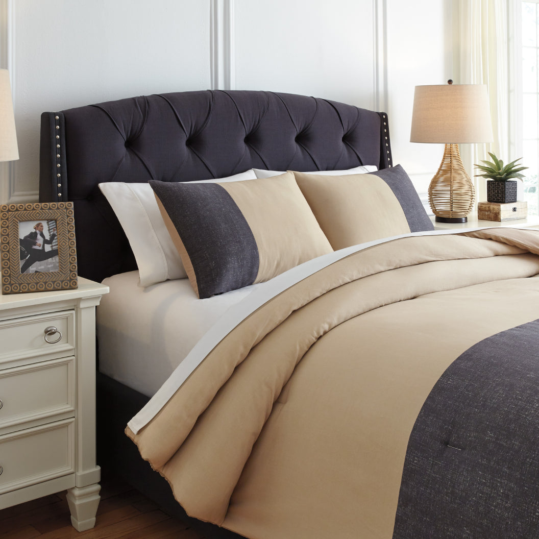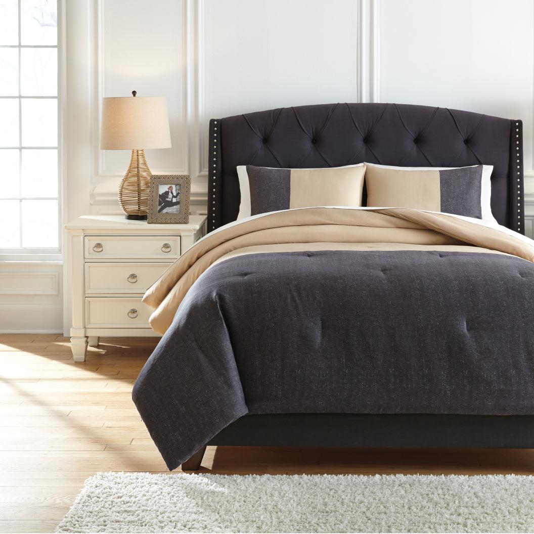 L’ensemble de douillette queen Medi Q783003Q de Ashley se distingue par son allure contemporaine et son confort supérieur. Grâce à son jeu de blocs de couleurs contrastées — charbon foncé et beige doré —, il transforme instantanément la chambre en un espace élégant et audacieux. Ce design géométrique crée un effet visuel fort tout en conservant une esthétique équilibrée et sophistiquée. Léger et doux, il assure un confort optimal tout au long de l’année. Facile à coordonner avec divers styles de mobilier, il constitue un choix idéal pour moderniser une chambre à coucher sans effort.