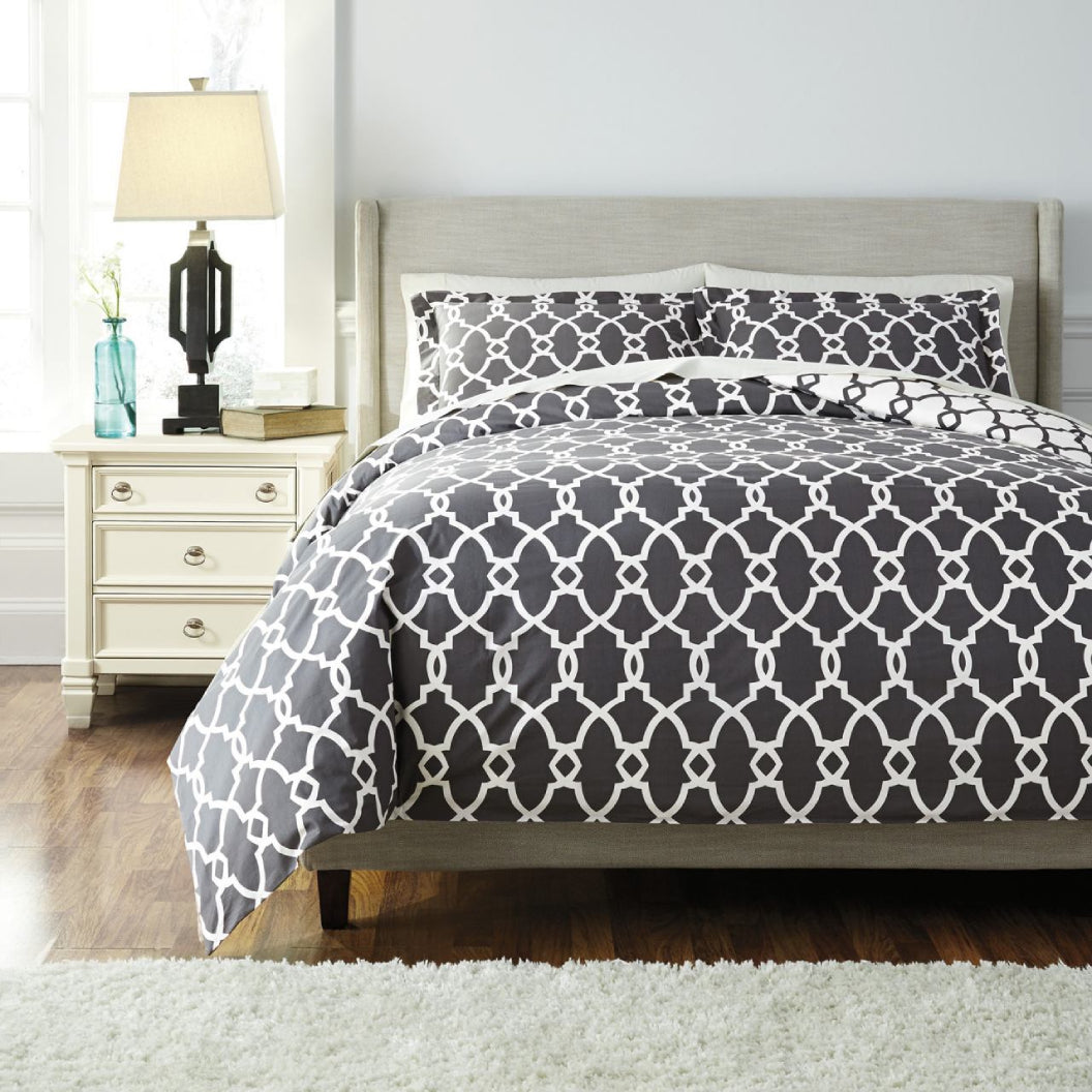 La parure de couette Gate Q480003Q de Ashley séduit par son élégance décontractée et son allure intemporelle. Conçue dans un style vintage contemporain, elle combine simplicité et raffinement pour créer une atmosphère douce et apaisante dans la chambre à coucher. Sa teinte grise neutre s’harmonise aisément avec une grande variété de décors et de textures, qu’il s’agisse d’un intérieur moderne, rustique ou transitionnel. Grâce à son tissu naturel et à sa finition soignée, elle offre un confort supérieur et un look haut de gamme qui transforme l’espace en véritable refuge de détente.