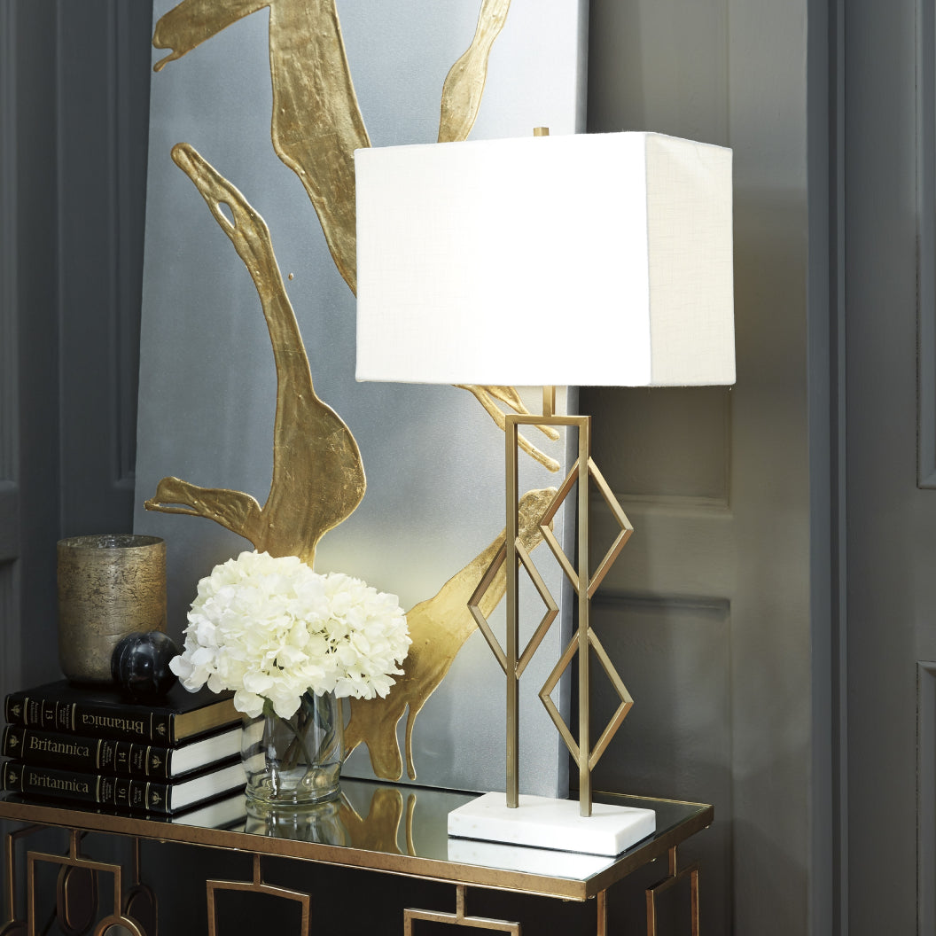 Lampe de table en métal doré et marbre blanc 35 po. - Edsel