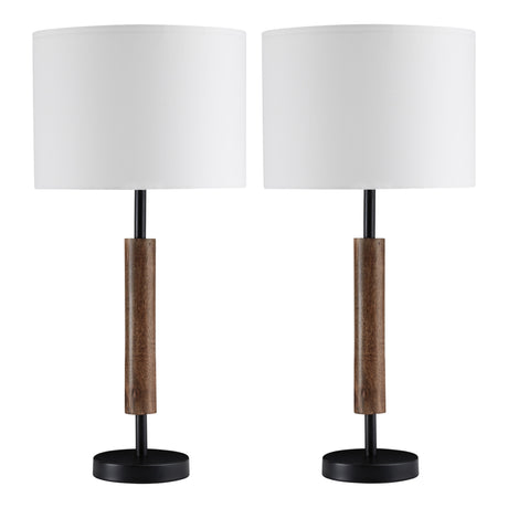 Ensemble de 2 lampes de table en bois et métal noir 27 po. - Maliny