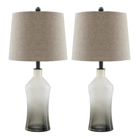 Ensemble de 2 lampes de tables en verre d'art gris dépoli 26 po. - Nollie