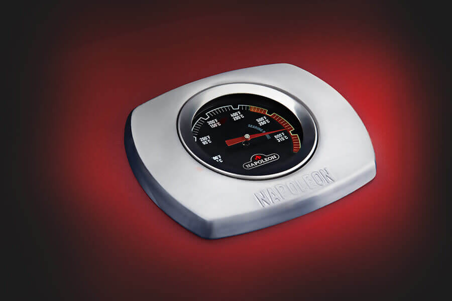 - Jauge de température Accu-Probeᴹᴰ permet de mesurer précisément la température à l’intérieur du barbecue ou du gril en une lecture fiable et rapide, aidant l’utilisateur à contrôler la cuisson.