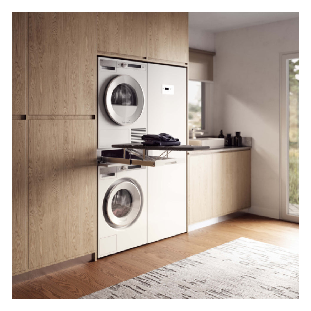 La planche à repasser coulissante ASKO HI1153T est une solution ingénieuse qui optimise l’espace de la buanderie tout en améliorant le confort d’utilisation. Installée entre le lave-linge et le sèche-linge, elle permet d’avoir une surface de repassage pratique à hauteur ergonomique, évitant les contraintes liées aux planches traditionnelles. Avec son design blanc discret, elle s’intègre parfaitement à l’esthétique des équipements ASKO et facilite les tâches quotidiennes de lessive.
