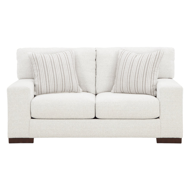 La causeuse Bethley PC8010435 en tissu blanc Frosted, conçue par Ashley, offre un équilibre parfait entre confort généreux et esthétique contemporaine. Grâce à ses larges accoudoirs, ses coussins moelleux et son revêtement Next‑Gen Nuvella™ résistant aux taches, elle s’intègre facilement dans un salon moderne tout en assurant une durabilité exceptionnelle. Les coussins décoratifs à rayures ajoutent une touche subtile de contraste pour un ensemble harmonieux et accueillant.