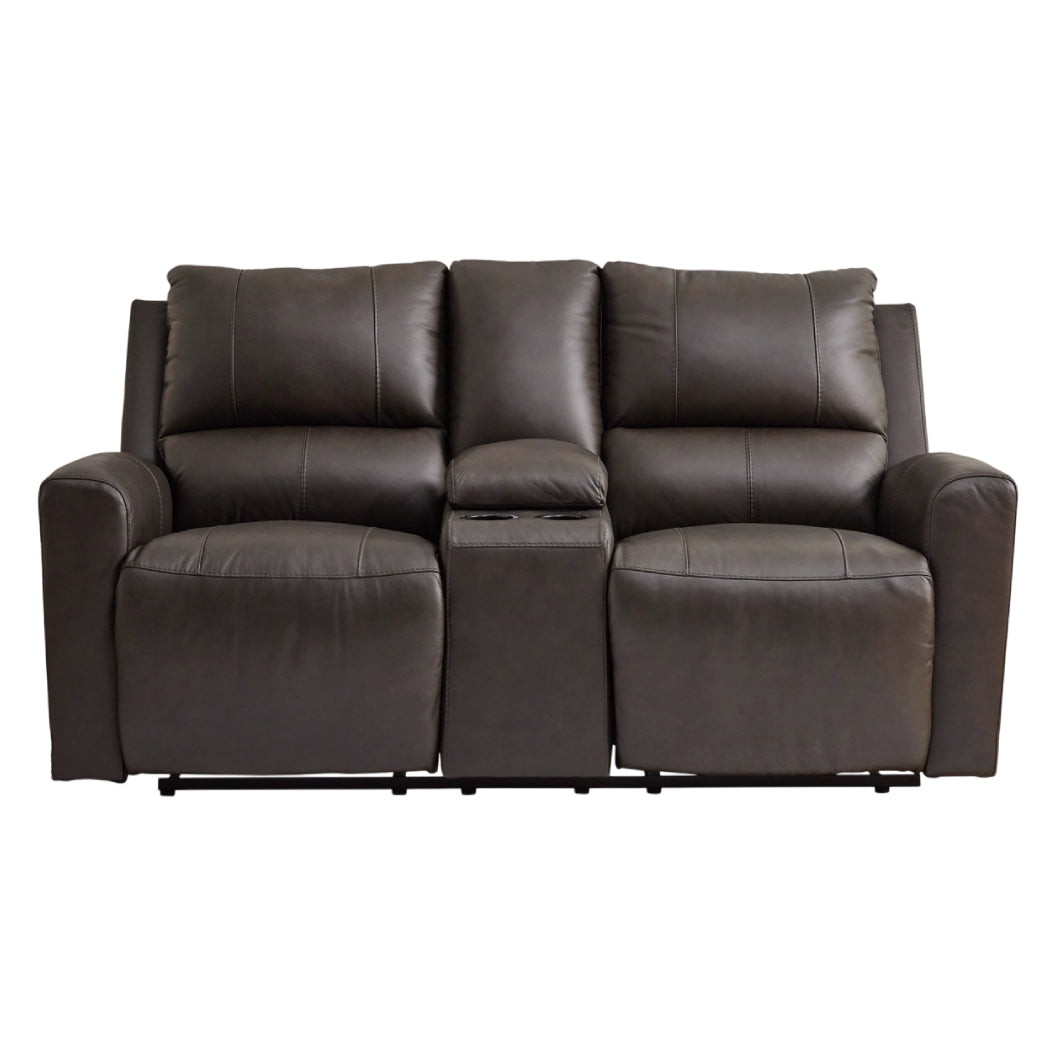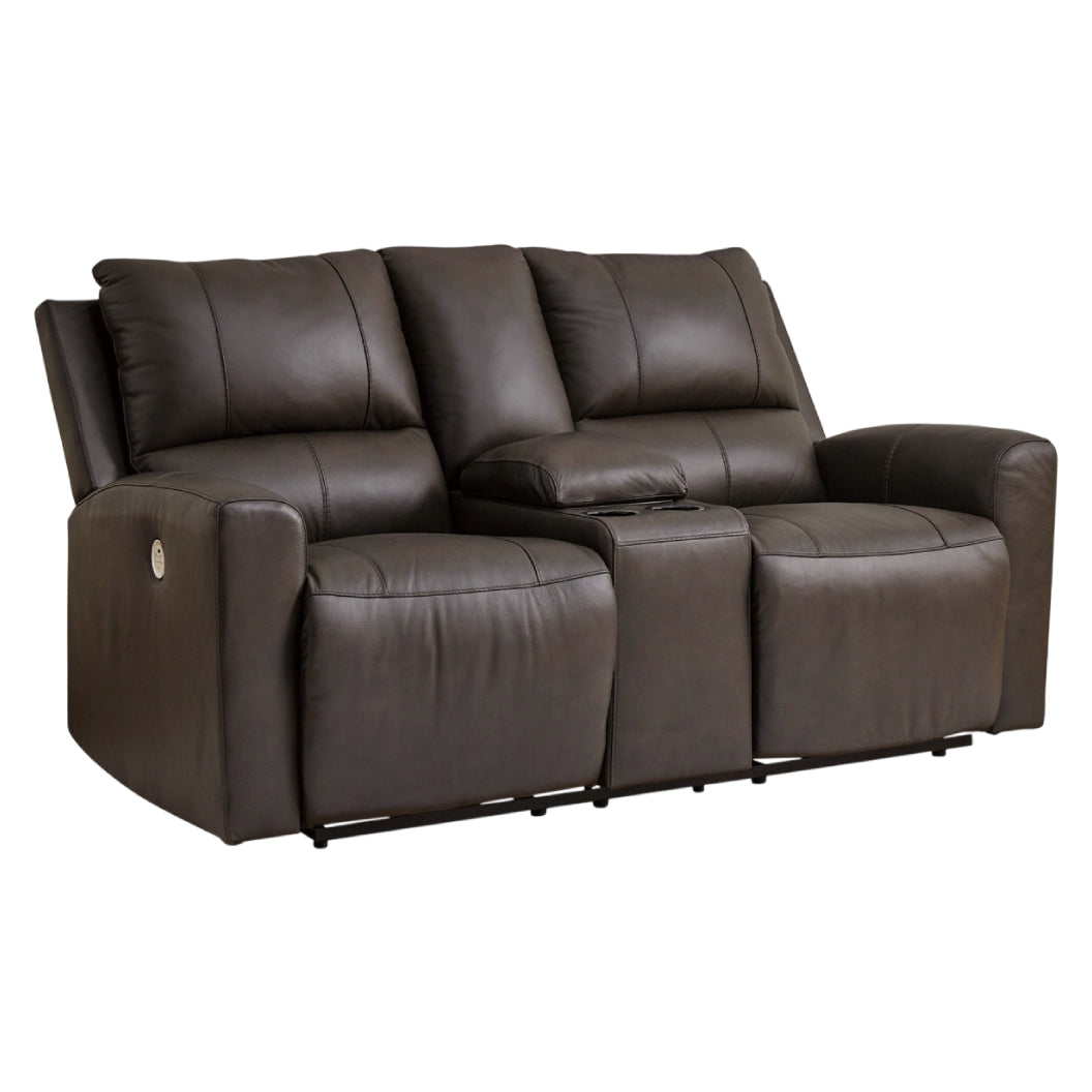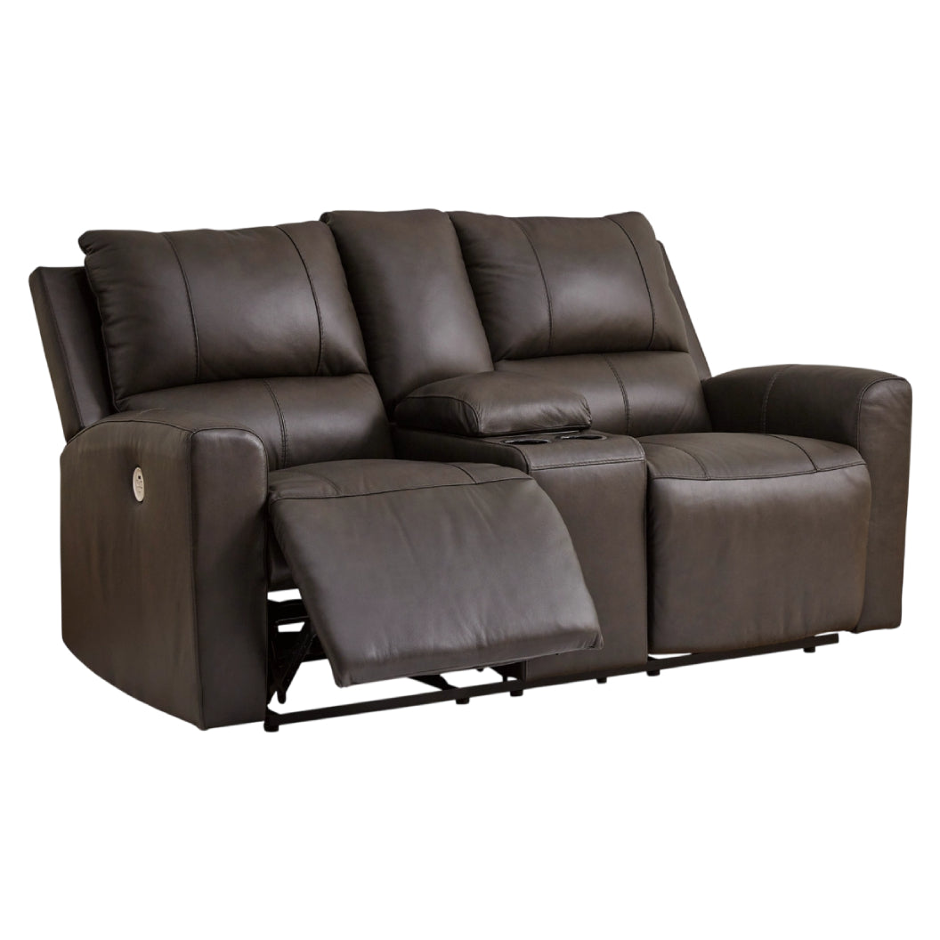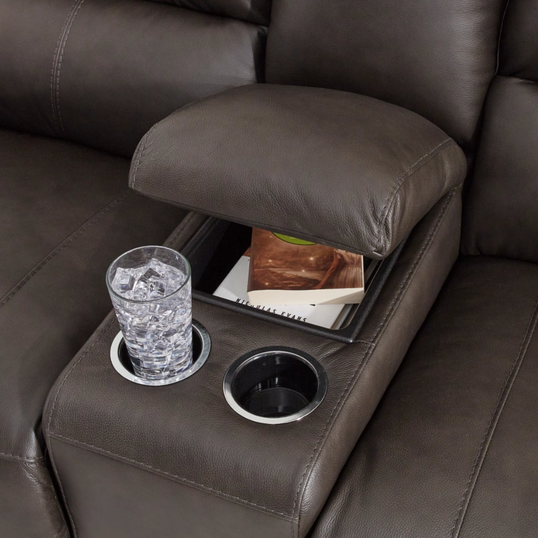 Causeuse motorisée en cuir gris foncé avec console - Boxmere