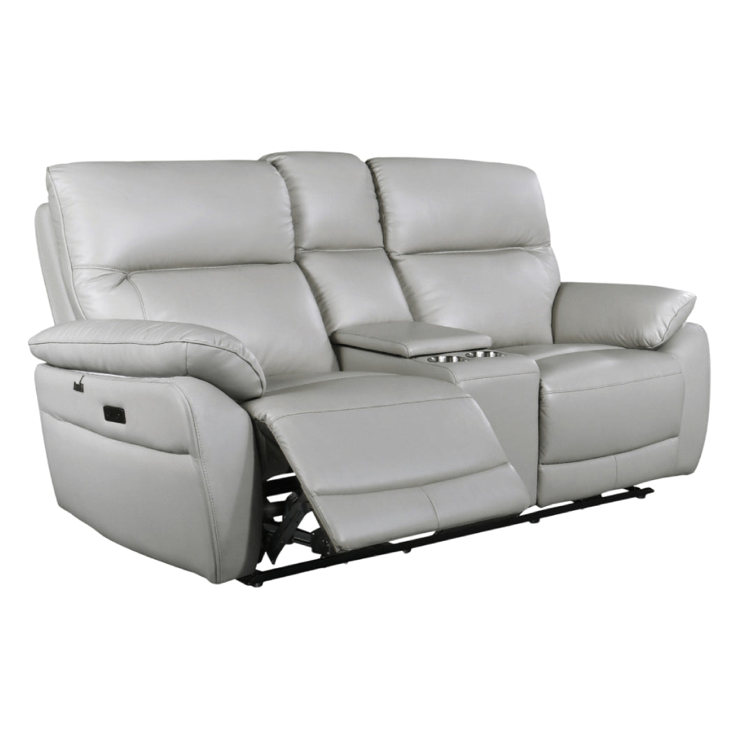 La causeuse inclinable électrique Oakland 1327-2P de Azur allie confort, élégance et praticité pour enrichir votre espace de vie. Disponible dans des teintes audacieuses — perle ou bleu acier — elle devient une pièce maîtresse qui attire le regard tout en s’intégrant à un décor moderne. Son assise ferme et son dossier généreusement rembourré assurent un soutien agréable et durable, idéal pour vos moments de détente devant un film ou vos soirées téléromans. Sa console centrale intégrée ajoute une fonctionnalité appréciable : elle permet de garder boissons, télécommandes ou petits accessoires à portée de main, tout en séparant harmonieusement les deux assises.