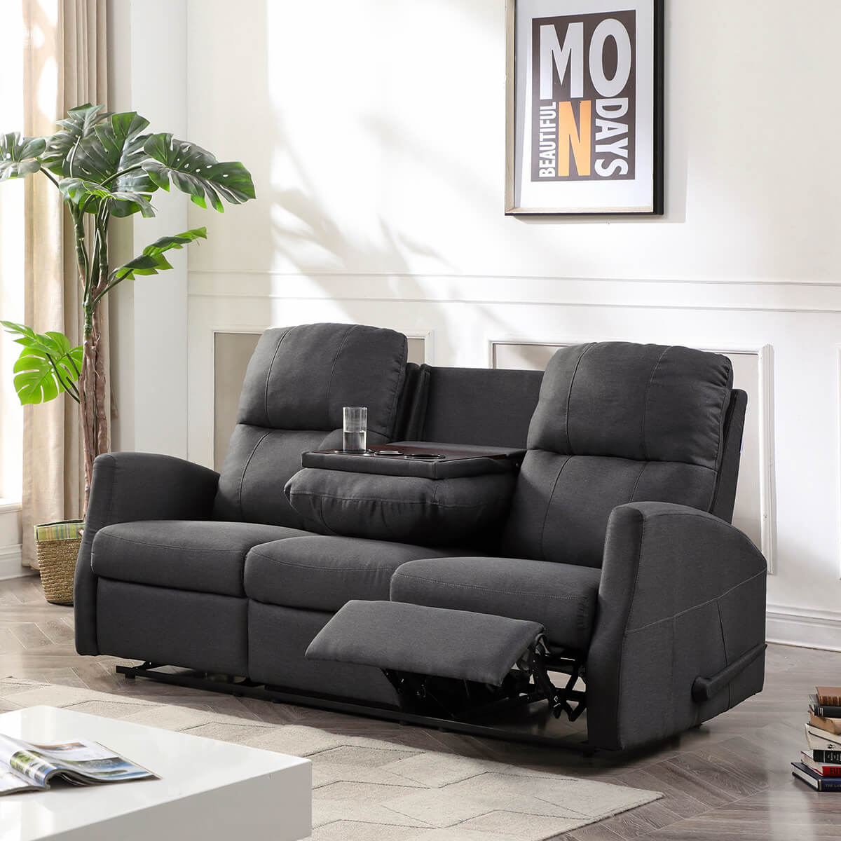 Sofa inclinable en tissu avec table rabattable & chargeur sans fil - Athènes