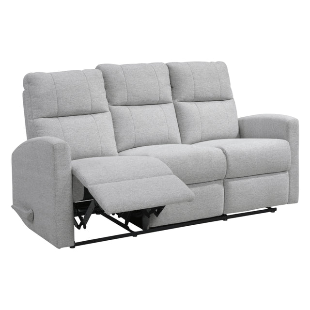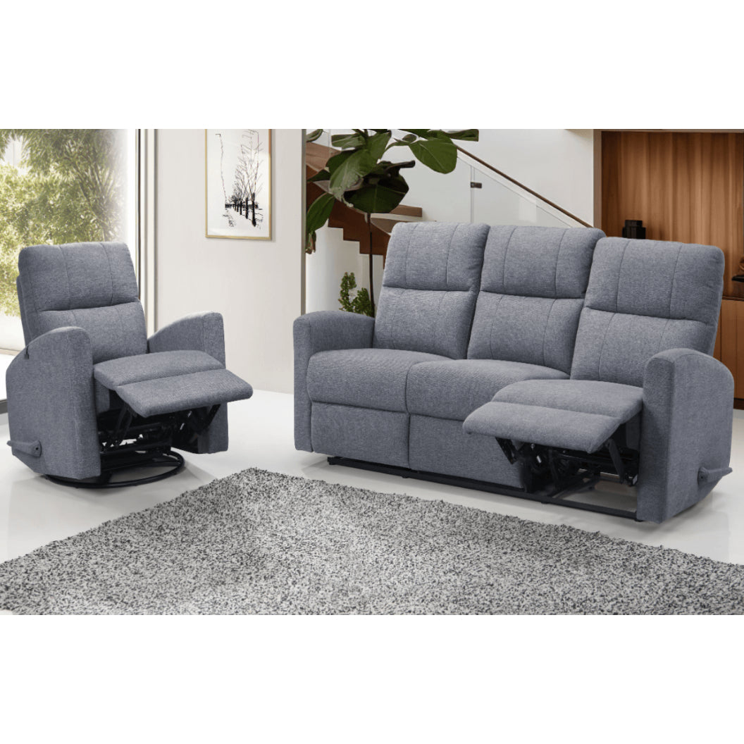 Le sofa inclinable manuel Florence de Mobilier Azur est pensé pour la détente avec un style sobre et actuel. Son assise peu profonde de 19 pouces et son design ergonomique favorisent une posture naturelle et un confort constant. Son esthétique moderne et épurée s’intègre facilement au salon principal, sans alourdir l’espace. Le tissu 100 % polyester — proposé en trois couleurs — apporte une finition uniforme qui se marie aisément à différents décors.