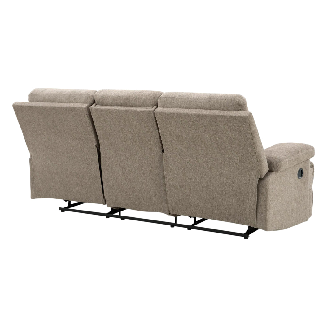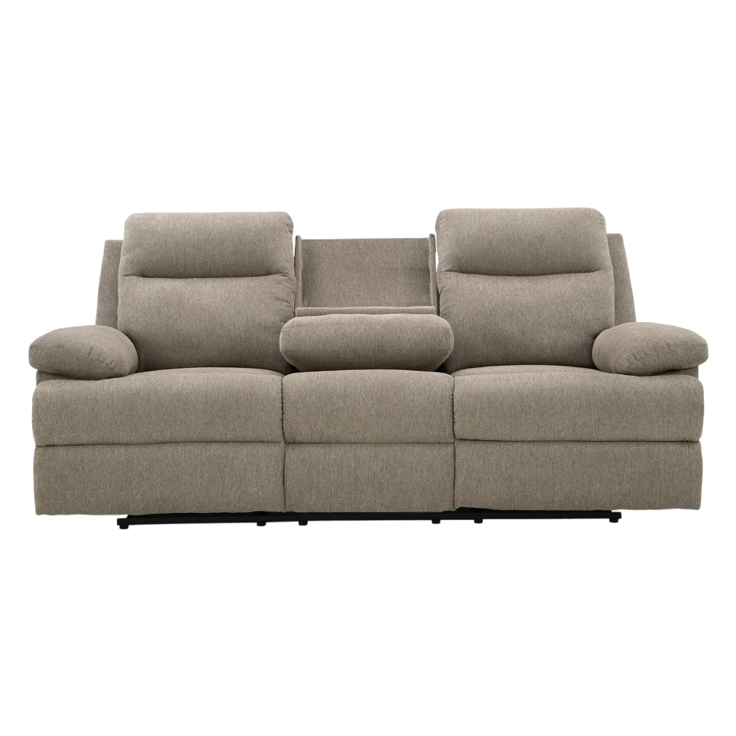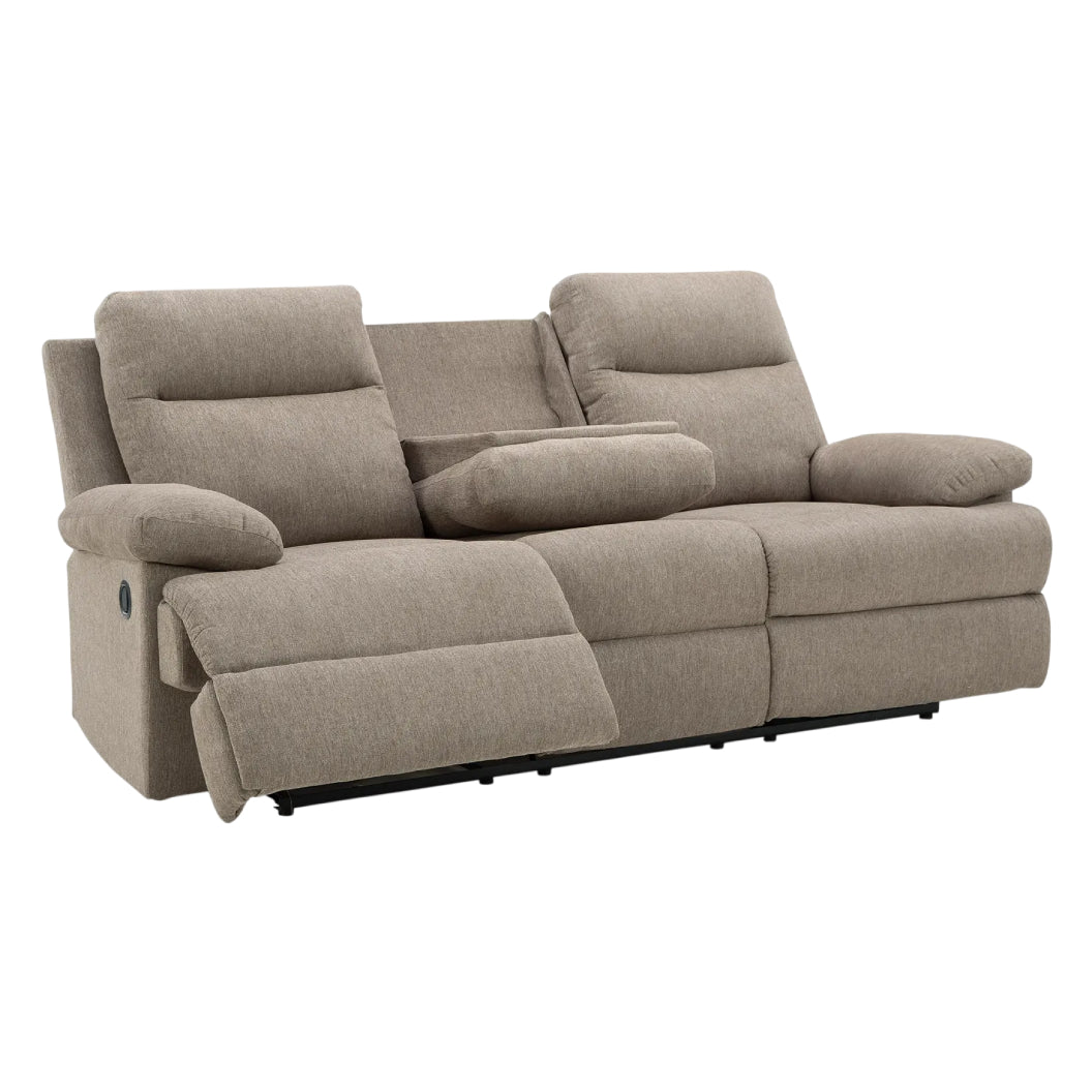 Sofa inclinable en tissu taupe avec table centrale rabattable - Side-Swipe