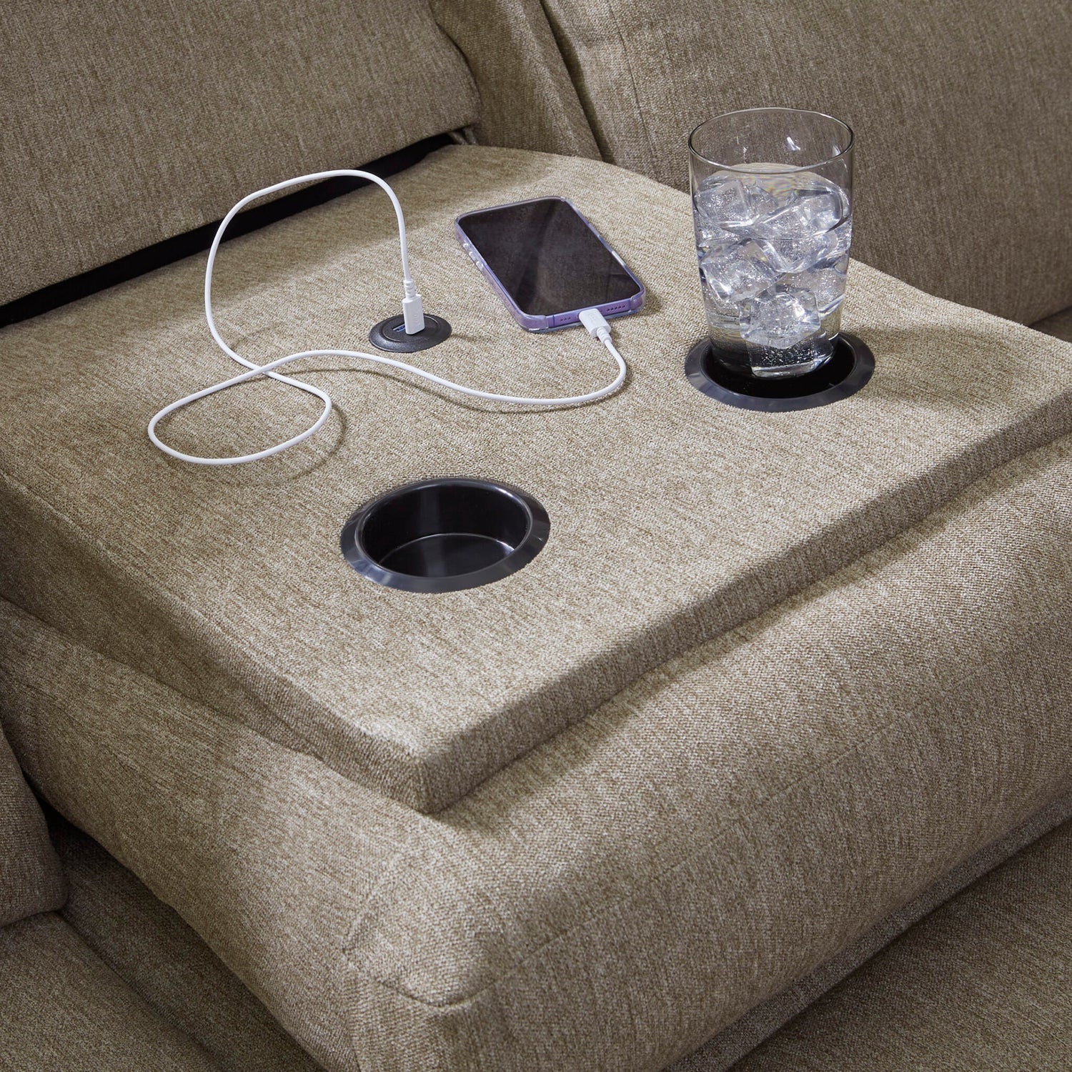 Le canapé inclinable Side-Swipe PC9140589 de Ashley revisite le style traditionnel avec un confort généreux et des fonctionnalités pratiques. Recouvert d’un tissu chenille doux couleur moka, il vous enveloppe de douceur à chaque utilisation. Les assises latérales sont inclinables manuellement pour une détente personnalisée, tandis que le siège central cache une table rabattable avec porte-gobelets et port USB. Idéal pour les soirées cinéma ou les moments de détente prolongés, ce canapé combine harmonieusement style intemporel et commodité moderne.