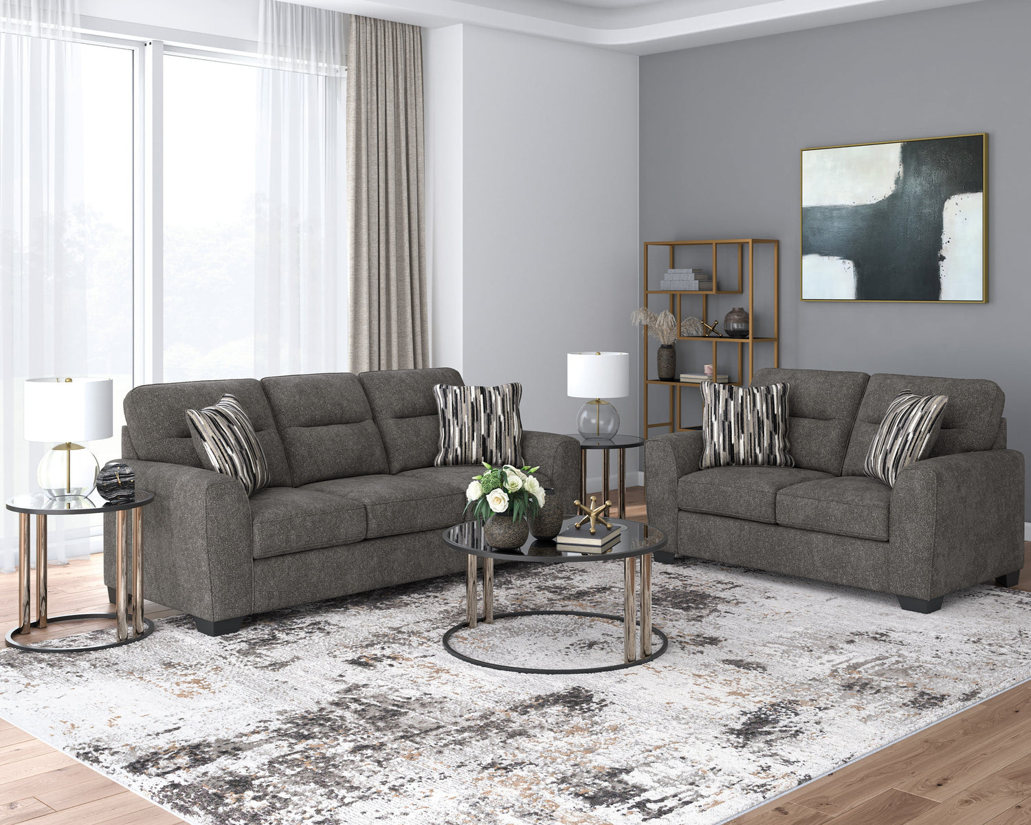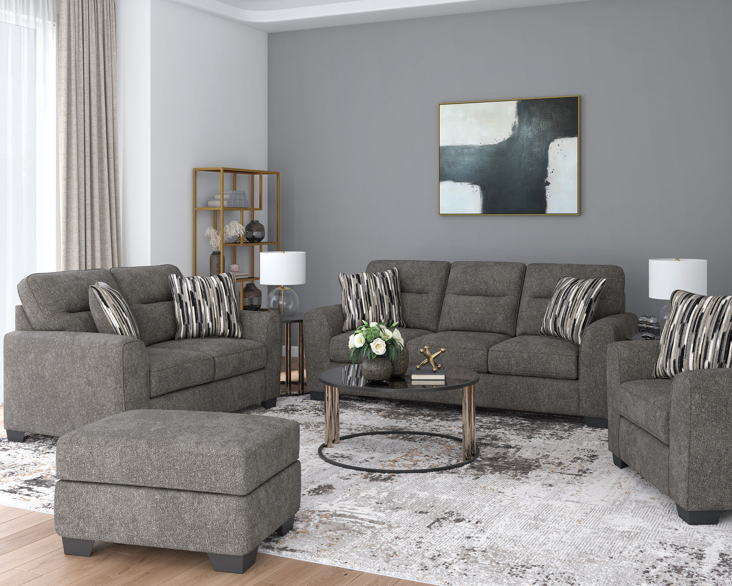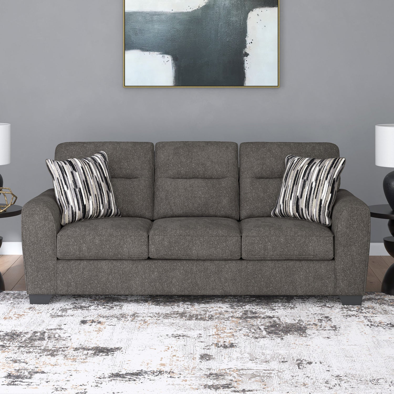 Le canapé Arendale PC3130538 de Ashley propose une alliance idéale entre confort quotidien et design moderne. Son revêtement en polyester doux, dans une teinte graphite raffinée, s’harmonise parfaitement avec les décors neutres ou minimalistes. Grâce à son assise généreuse, il offre un espace accueillant pour se détendre seul ou à deux. Des coussins décoratifs à motifs géométriques viennent parfaire l’ensemble avec une touche tendance et texturée.