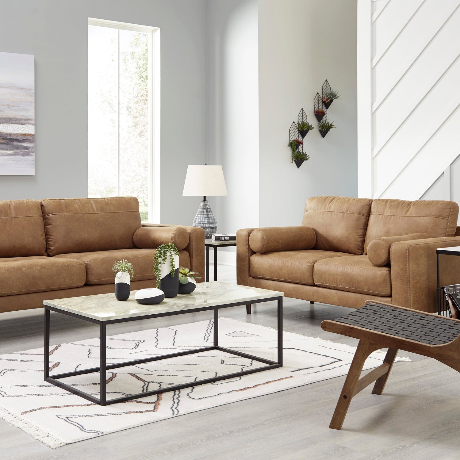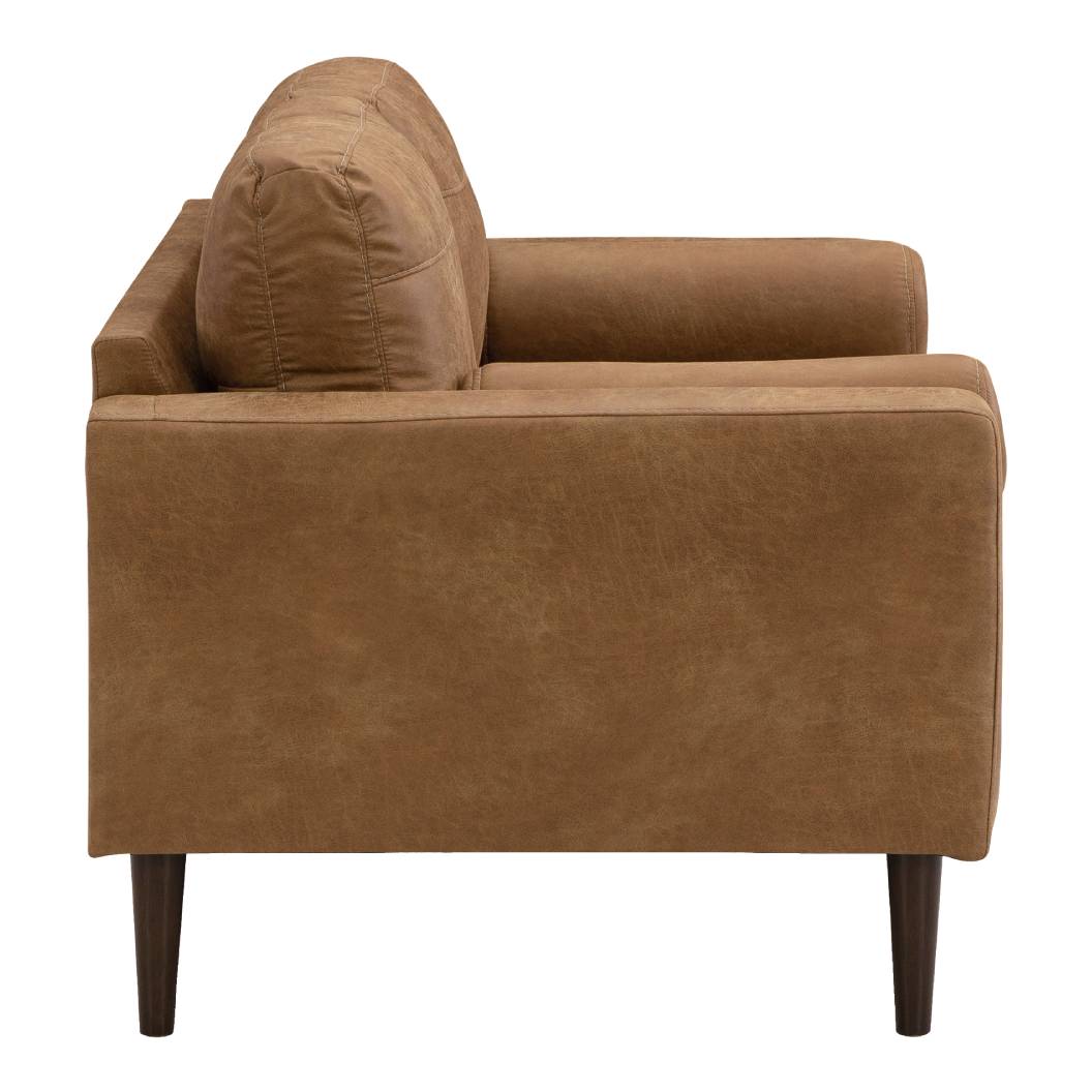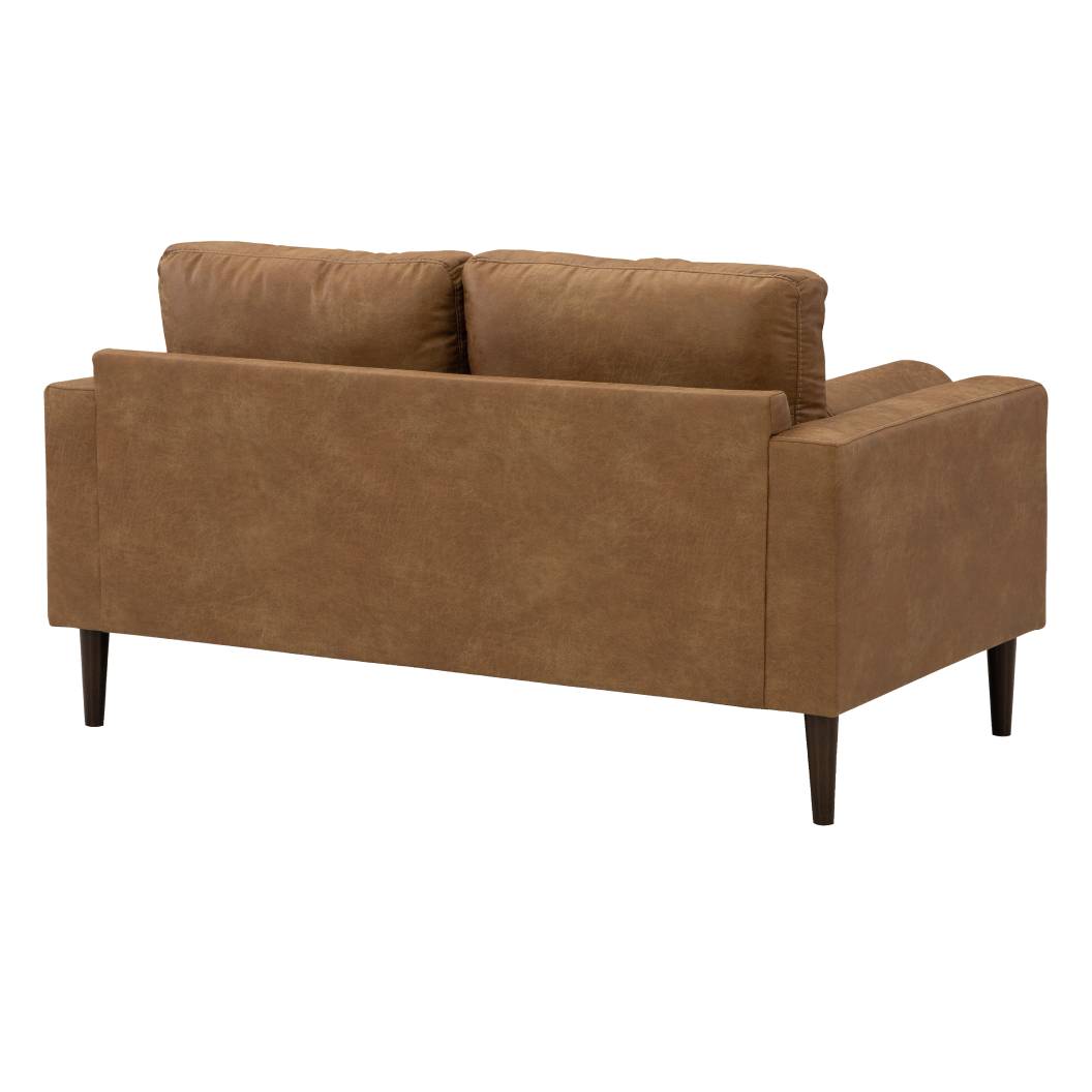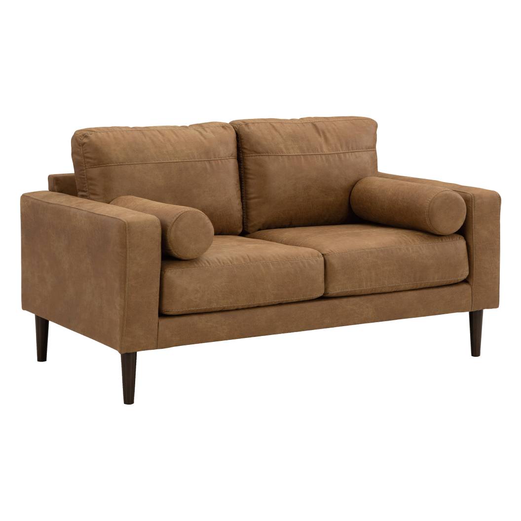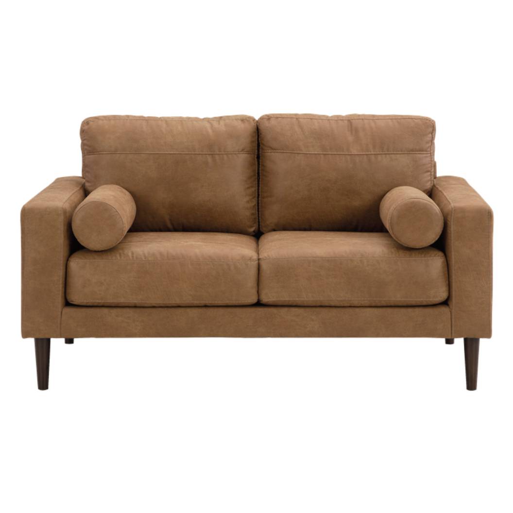 Causeuse aspect cuir brun caramel avec coussins - Telora