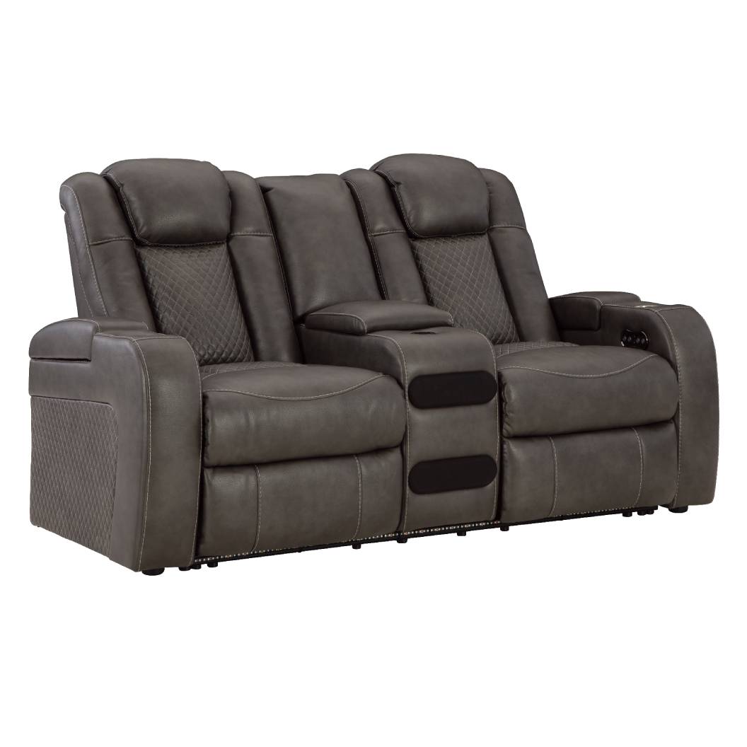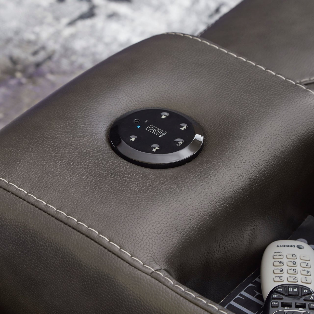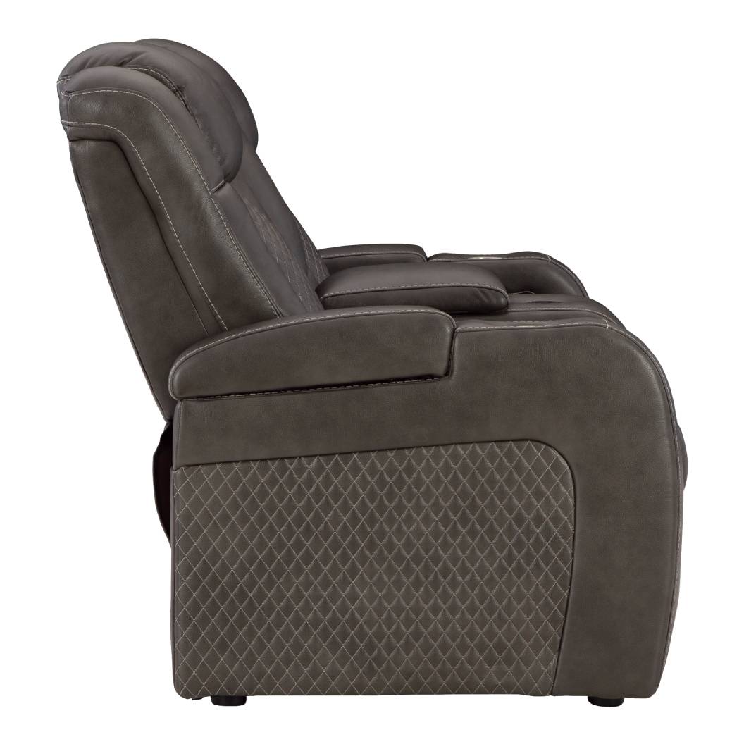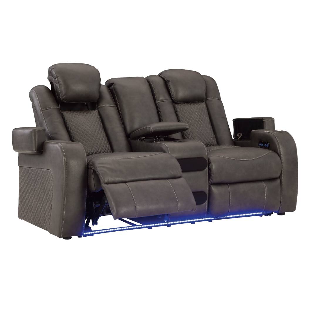 Causeuse motorisée aspect cuir gris avec console - Mountainous