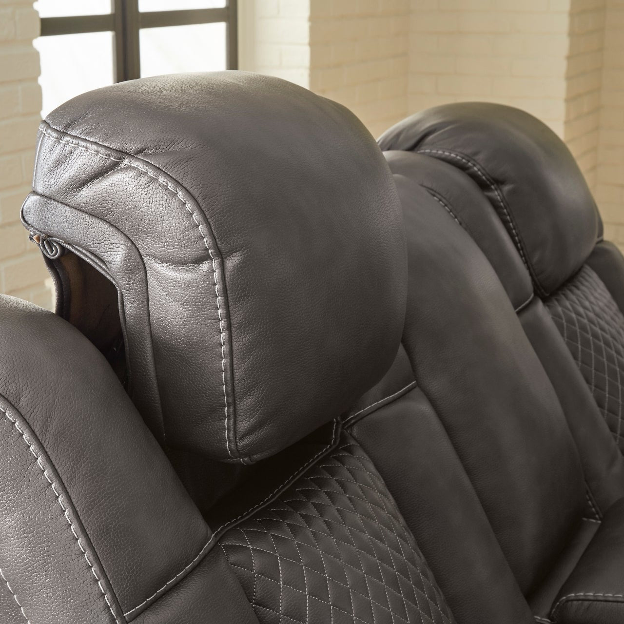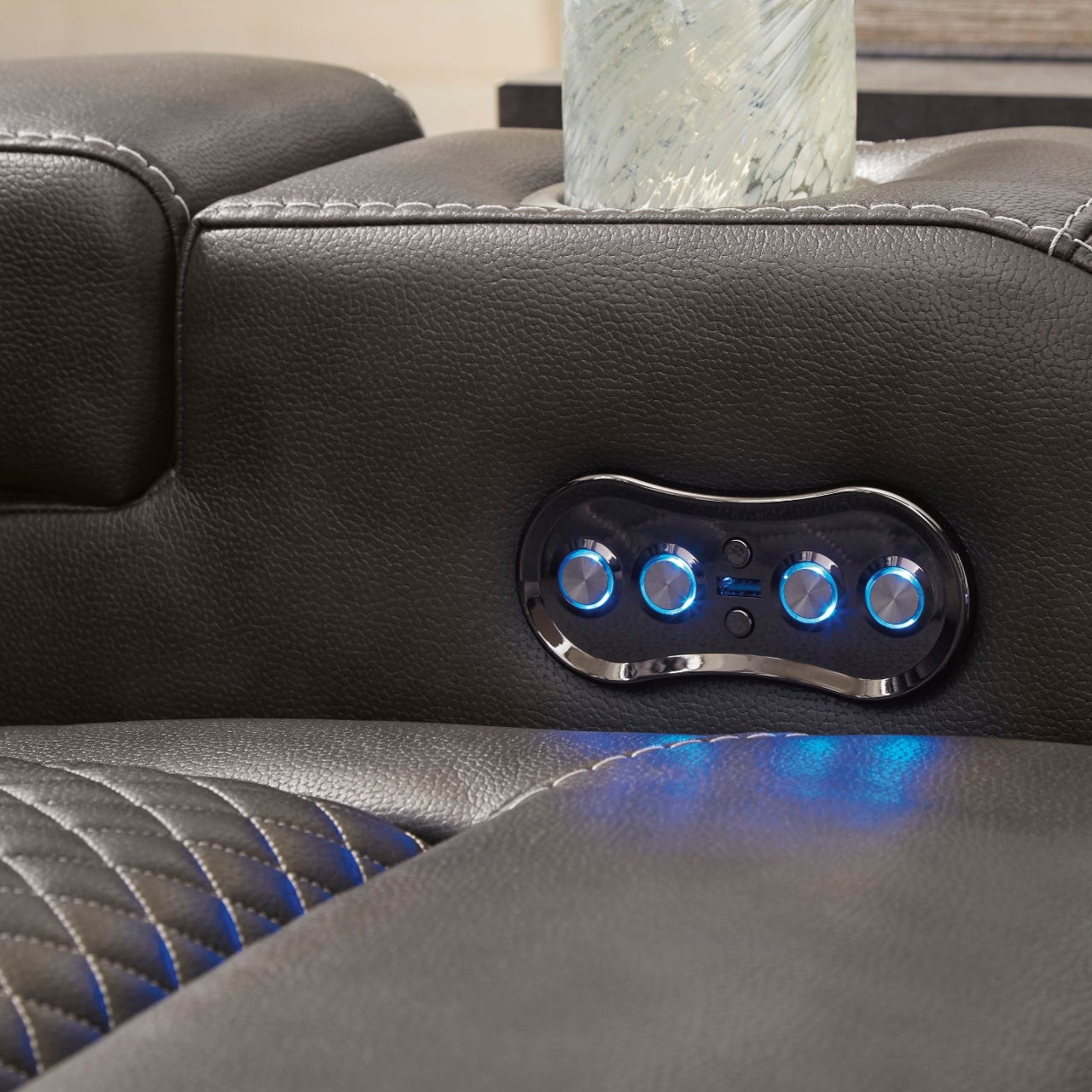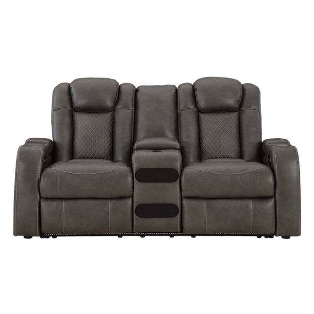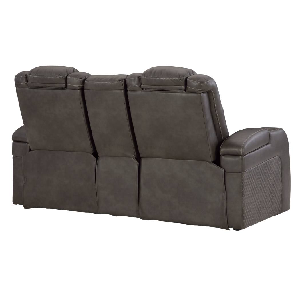 Causeuse motorisée aspect cuir gris avec console - Mountainous