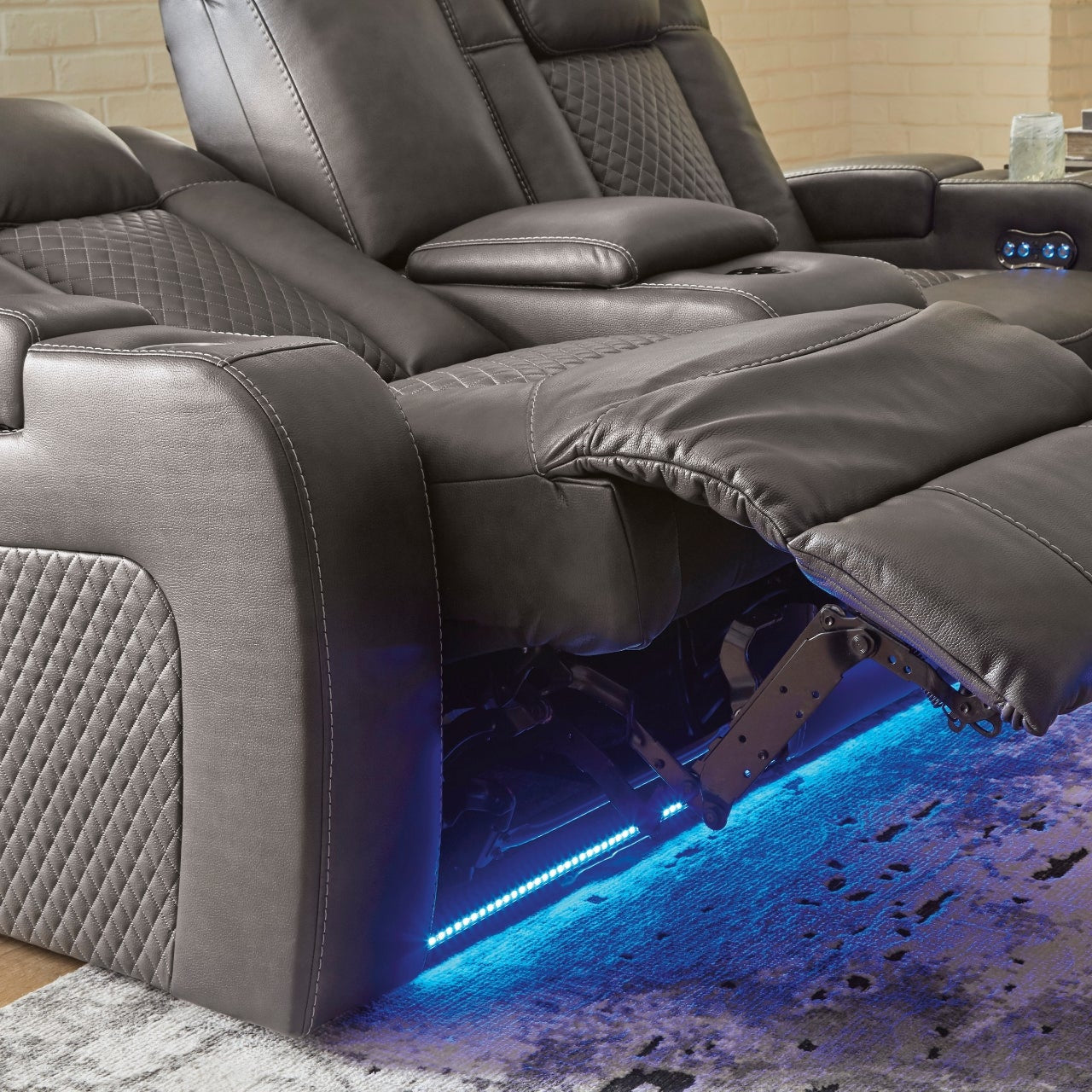Cette causeuse inclinable électrique propose une expérience de divertissement inégalée, directement depuis votre salon. Conçue pour allier confort avancé et fonctionnalités technologiques, elle se distingue par son système audio sans fil intégré, ses lumières DEL d’ambiance et ses nombreuses options de rangement. Avec son revêtement en aspect cuir, ses coutures en losange sophistiquées et ses accoudoirs profilés, elle adopte un style inspiré du design automobile haut de gamme. Que ce soit pour une soirée cinéma ou un moment de repos quotidien, cette causeuse offre un confort supérieur et un contrôle total à portée de main.