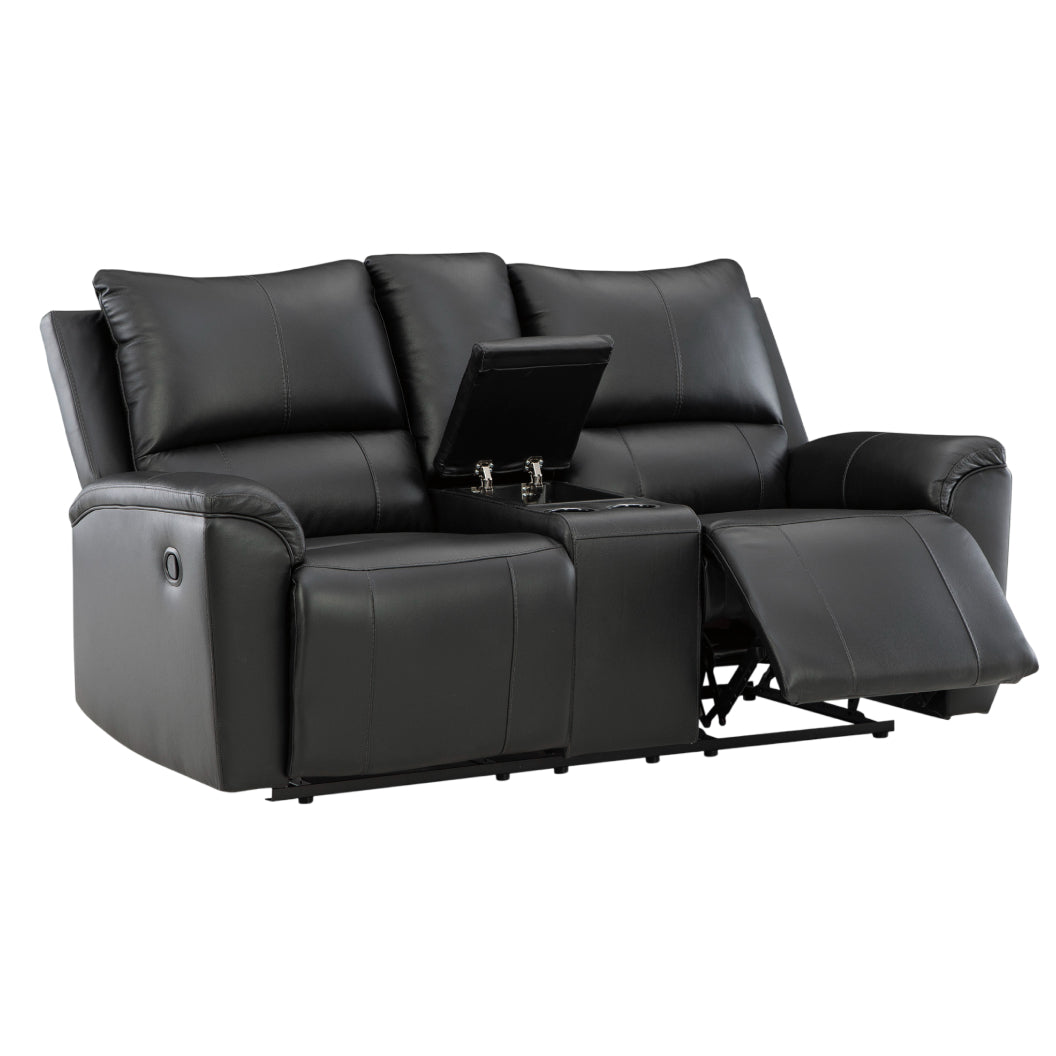 Causeuse inclinable aspect cuir noir avec console - Glossmore