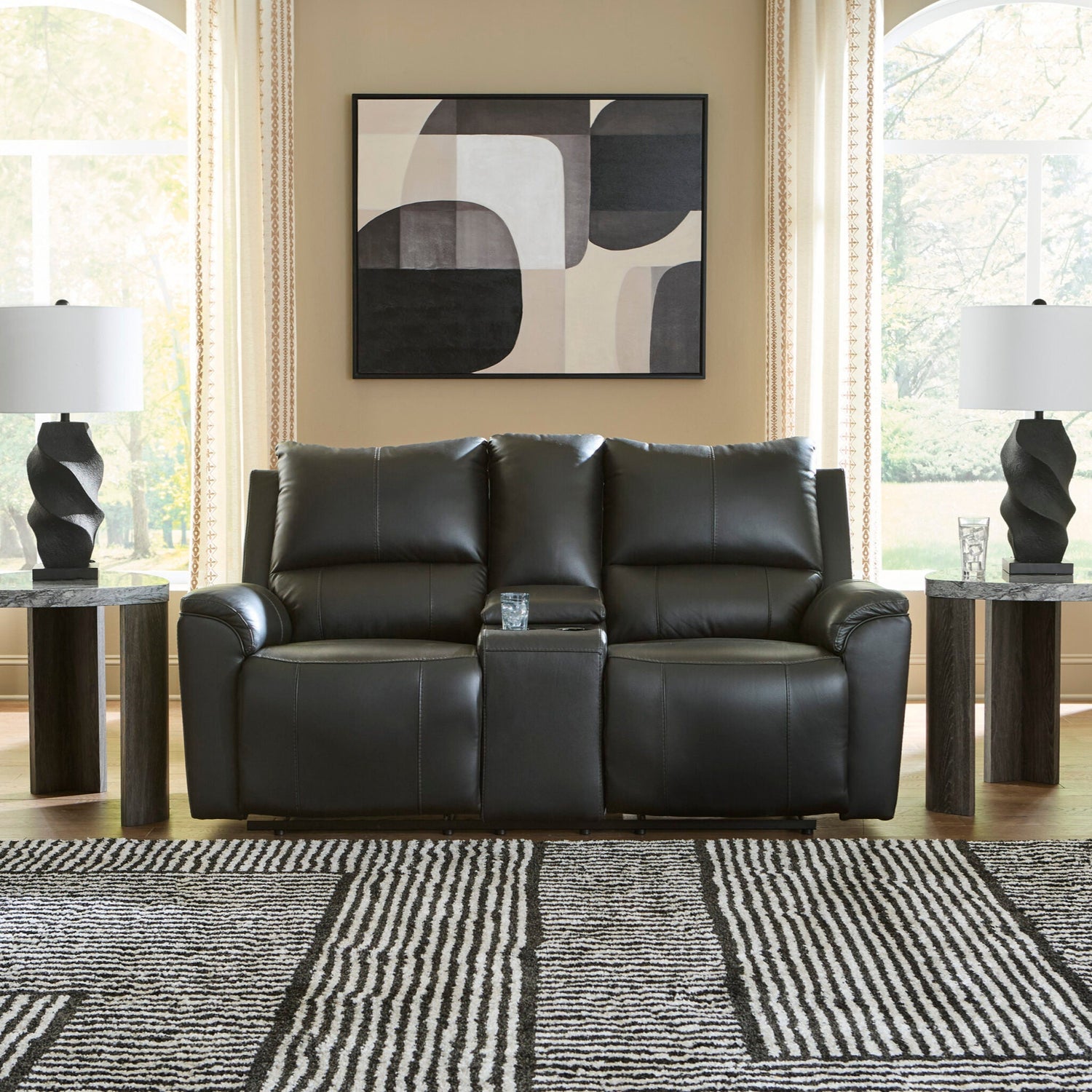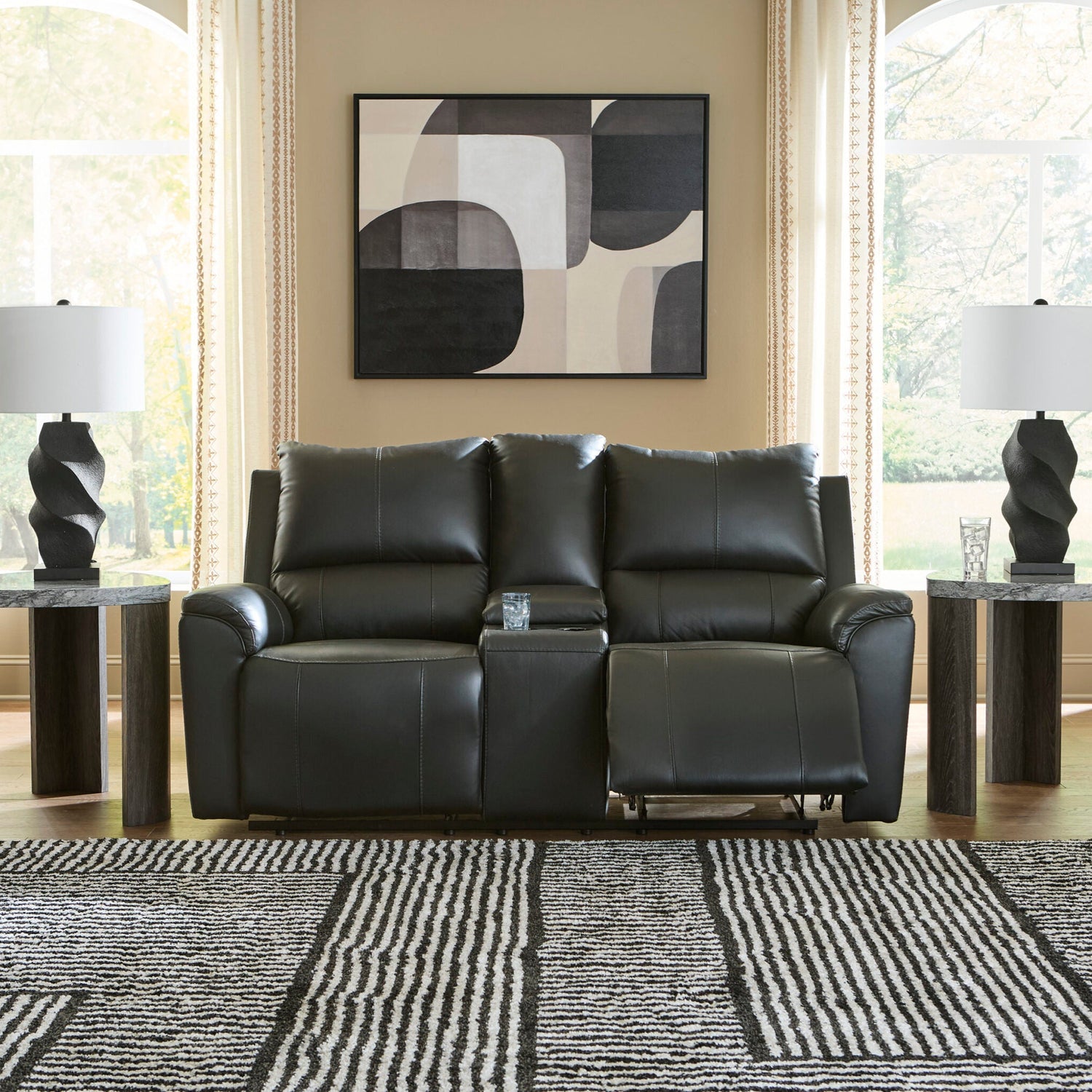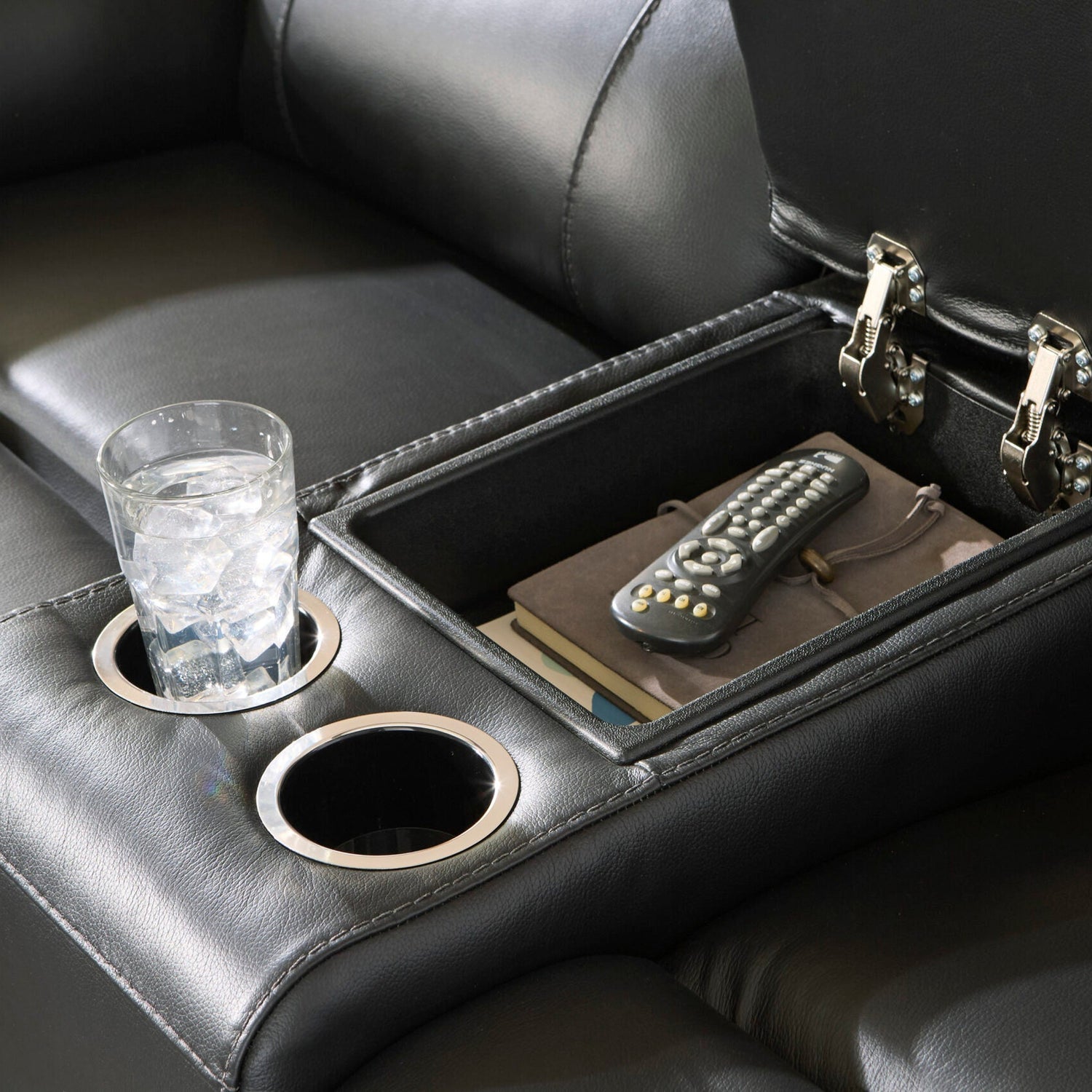 La causeuse inclinable Glossmore PCU1170094 de Ashley allie esthétique soignée et fonctionnalité intuitive. Recouvert d’un revêtement aspect cuir à l’apparence raffinée, il s’intègre harmonieusement dans tout intérieur contemporain. Sa console centrale intégrée avec porte-gobelets et rangement renforce sa praticité au quotidien, que ce soit pour une soirée cinéma ou un moment de lecture relaxant.