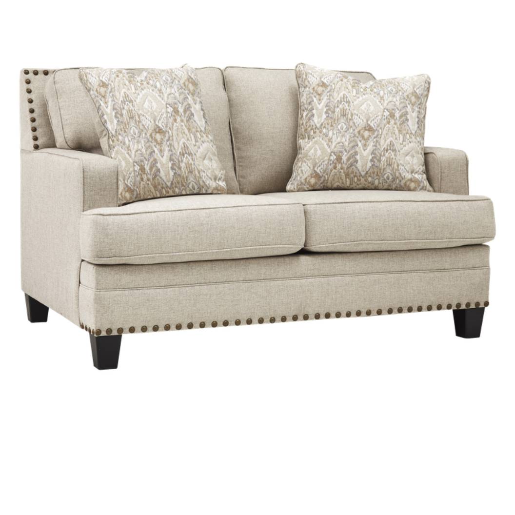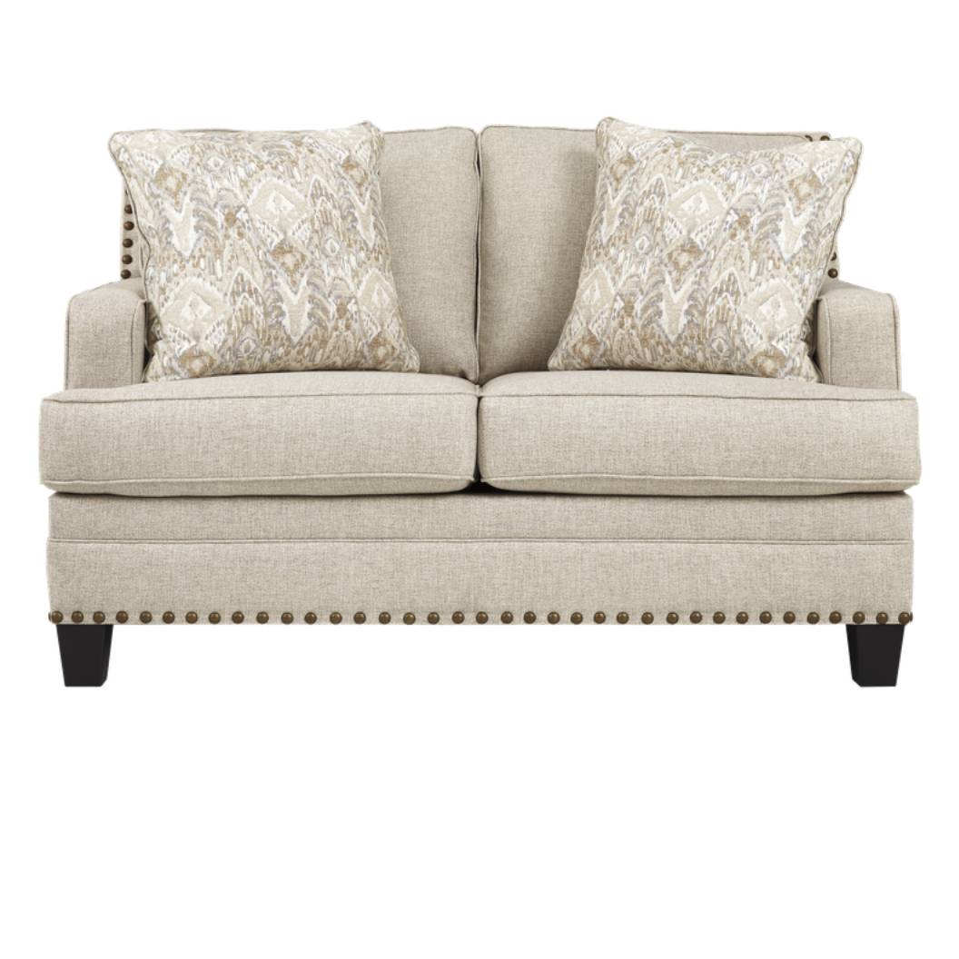 Causeuse en tissu beige effet lin avec coussins - Claredon