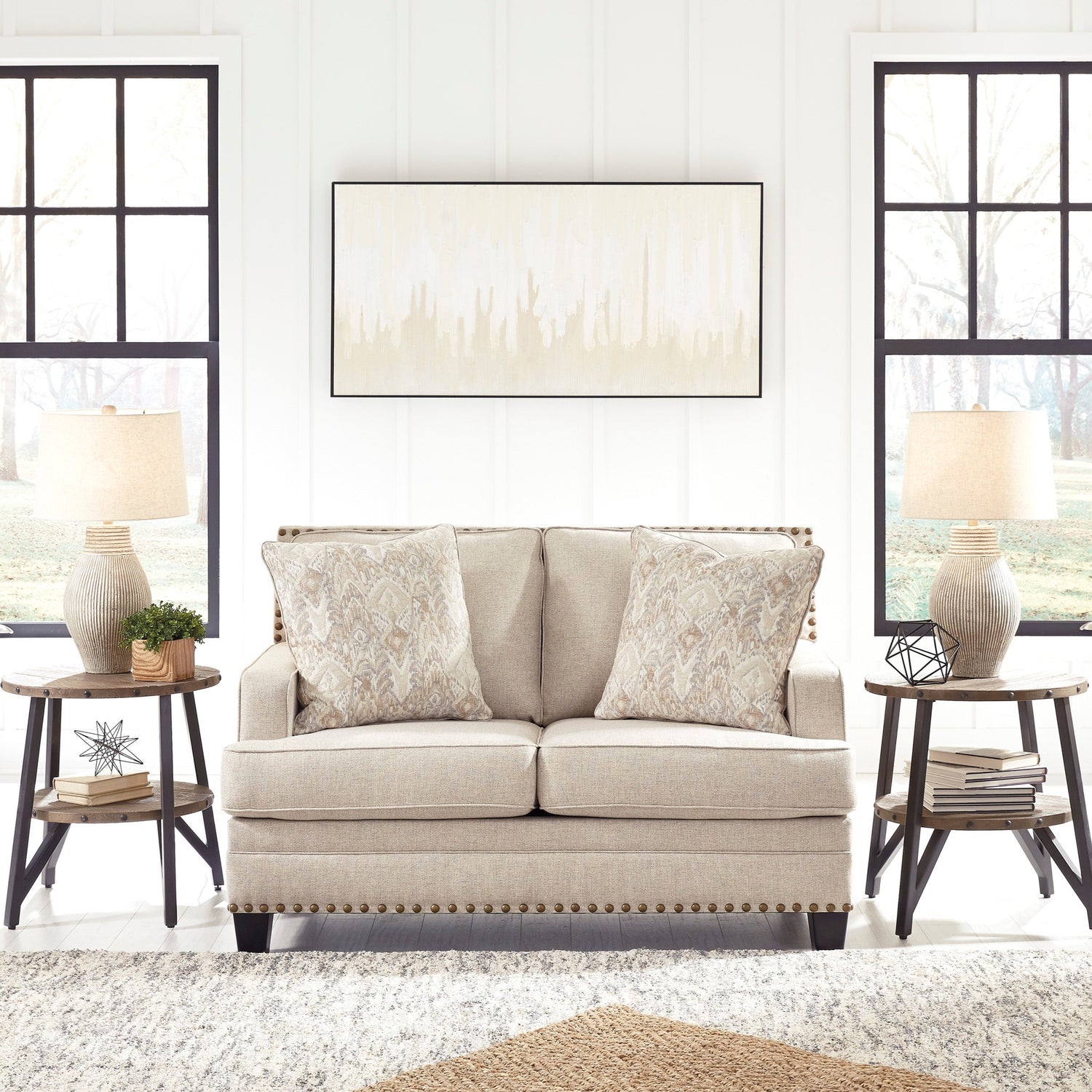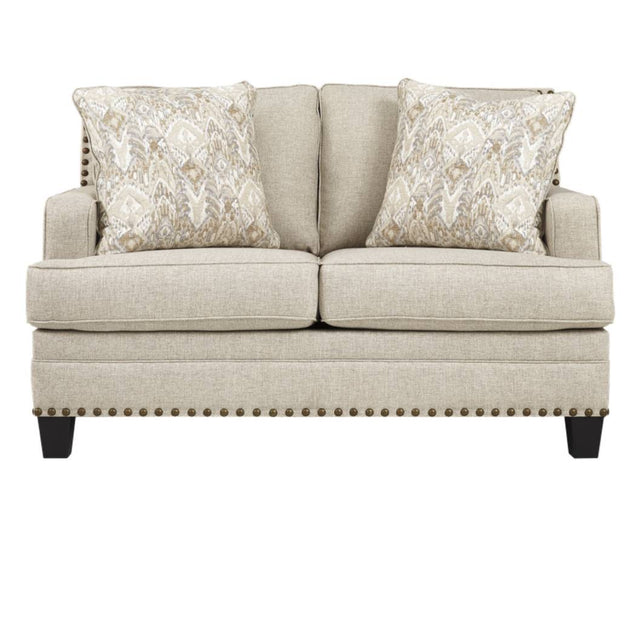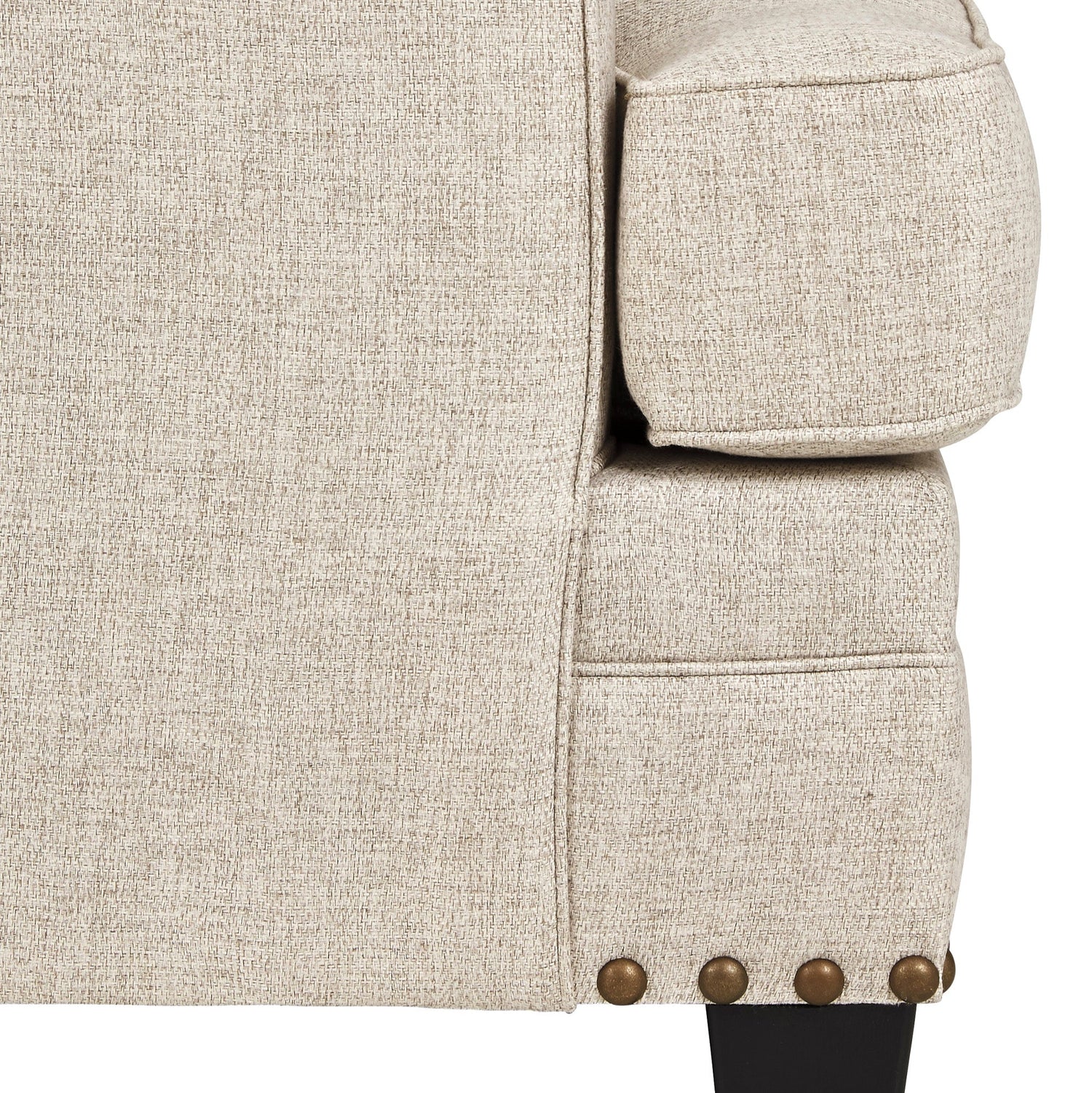 Mariage réussi entre influences classiques et contemporaines, cette causeuse Claredon apporte une touche chic et intemporelle aux intérieurs inspirés du style ferme modernisé. Son revêtement en lin tissé beige, ses accoudoirs en retrait enveloppés de coussins en T, et sa garniture cloutée décorative soulignent un design soigné et chaleureux. Parfaite pour une ambiance douce et raffinée, cette pièce allie texture, structure et confort, et s’intègre naturellement dans une palette de tons neutres. Les deux coussins décoratifs inclus, aux nuances subtiles, complètent son charme discret.