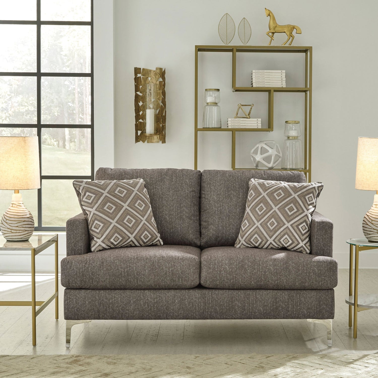 Causeuse en tissu brun grisâtre avec coussins - Arcola