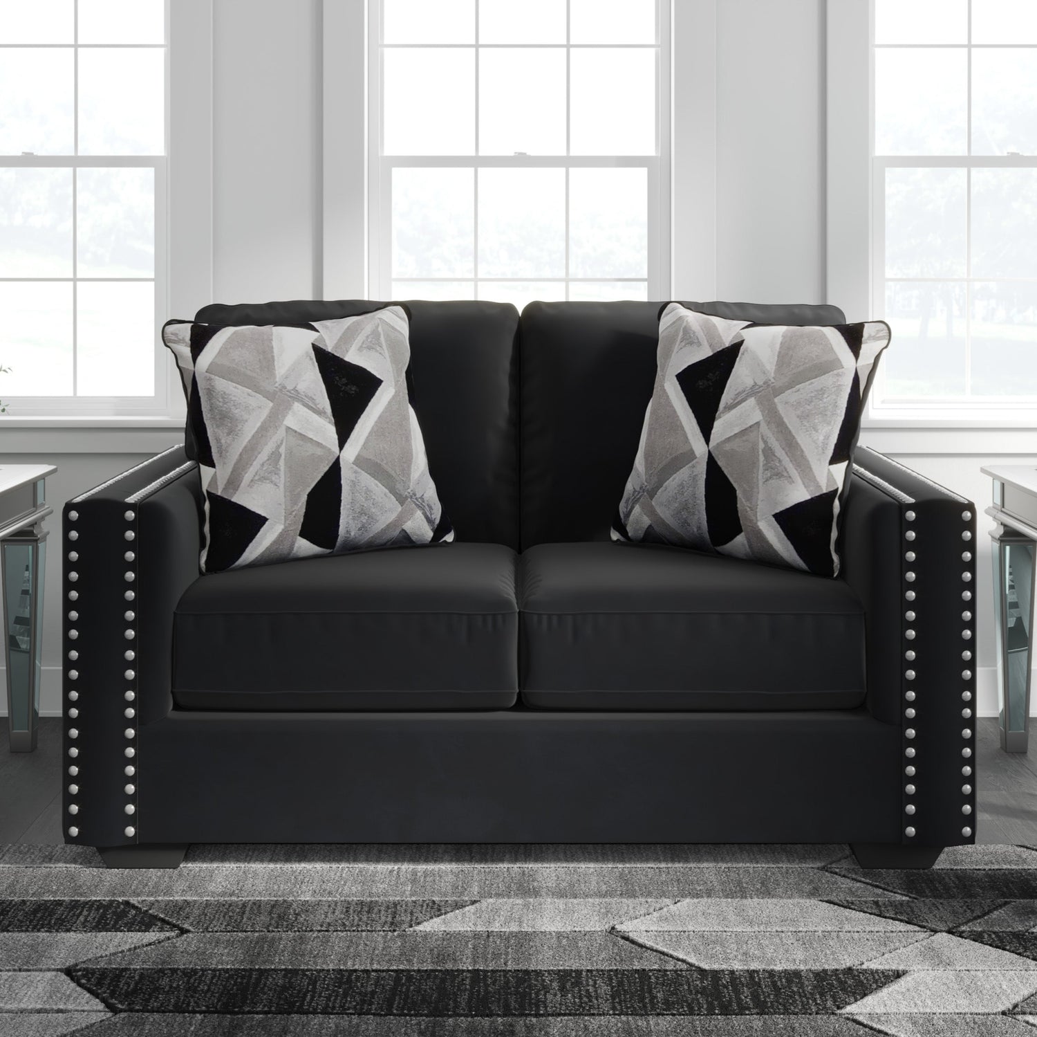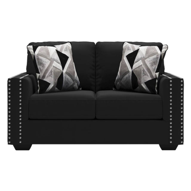 Avec son allure raffinée et son revêtement en velours noir onyx, cette causeuse Gleston 1220620 de Ashley allie design contemporain et finitions luxueuses. Ses lignes épurées, son profil compact 2 sur 2, et ses accoudoirs lisses ornés de clous décoratifs ton étain en font une pièce maîtresse pour tout espace de vie sophistiqué. Son format réduit est idéal pour les condos ou les intérieurs urbains où l'on recherche style et confort sans compromis.
