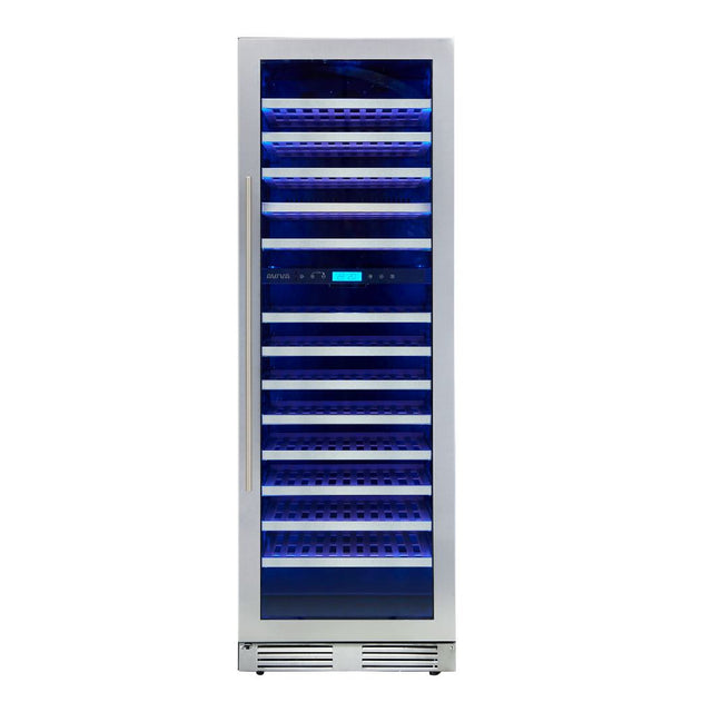 Le modèle ABWC1622SS d’Aviva offre une capacité étendue de 162 bouteilles, ce qui en fait une solution adaptée aux passionnés comme aux collectionneurs souhaitant optimiser l’entreposage de leur vin. Sa porte en verre traitée UV avec finition en acier inoxydable assure une présentation élégante tout en protégeant efficacement les bouteilles. Grâce à son installation encastrée ou autonome, ce cellier s’intègre facilement dans différents environnements. Les treize étagères en bois entièrement extensibles permettent un accès simple et une organisation fluide entre les deux zones de conservation. L’ensemble crée un espace fiable et polyvalent, pensé pour un usage quotidien.