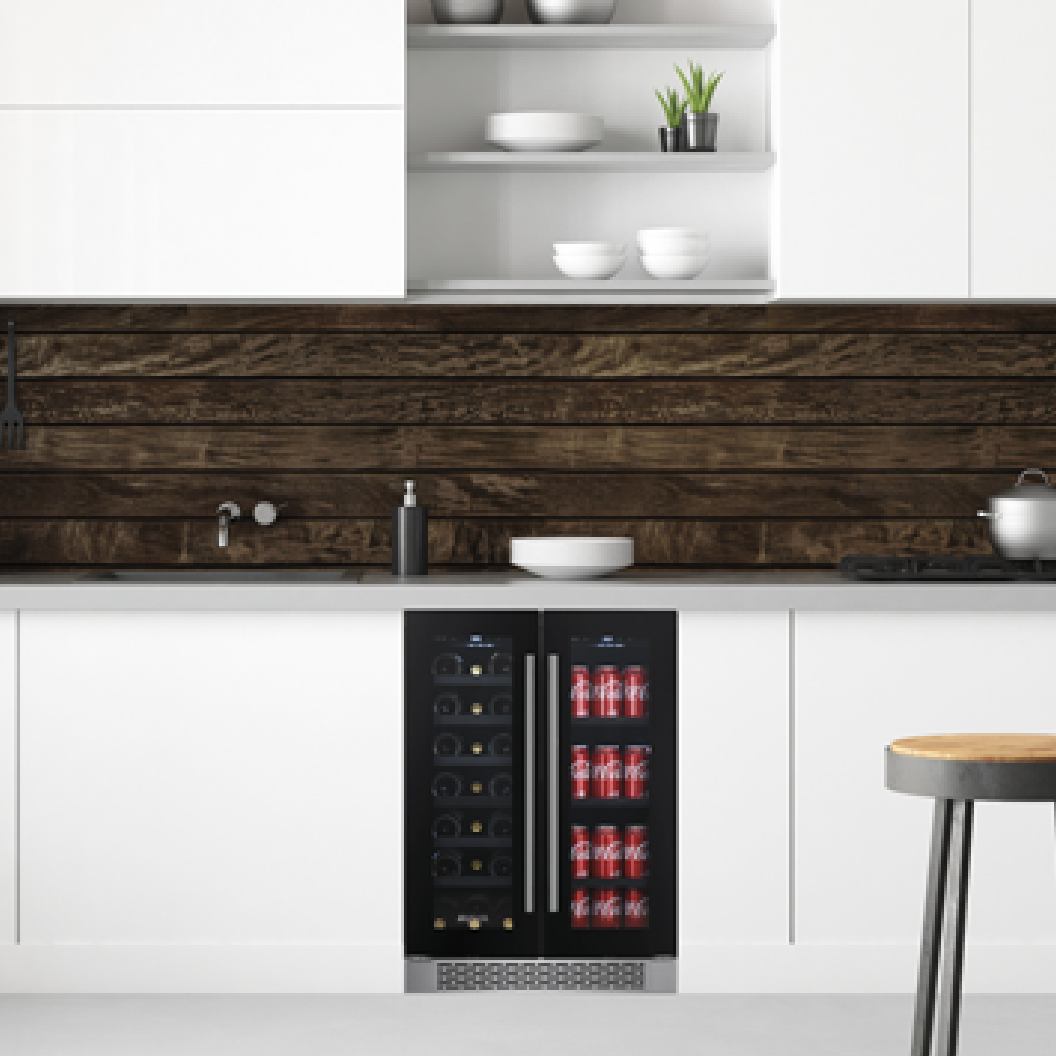 Combiné Cellier/Centre de breuvages porte française 24 po, 21 bouteilles & 64 canettes Noir - 2 zonesw