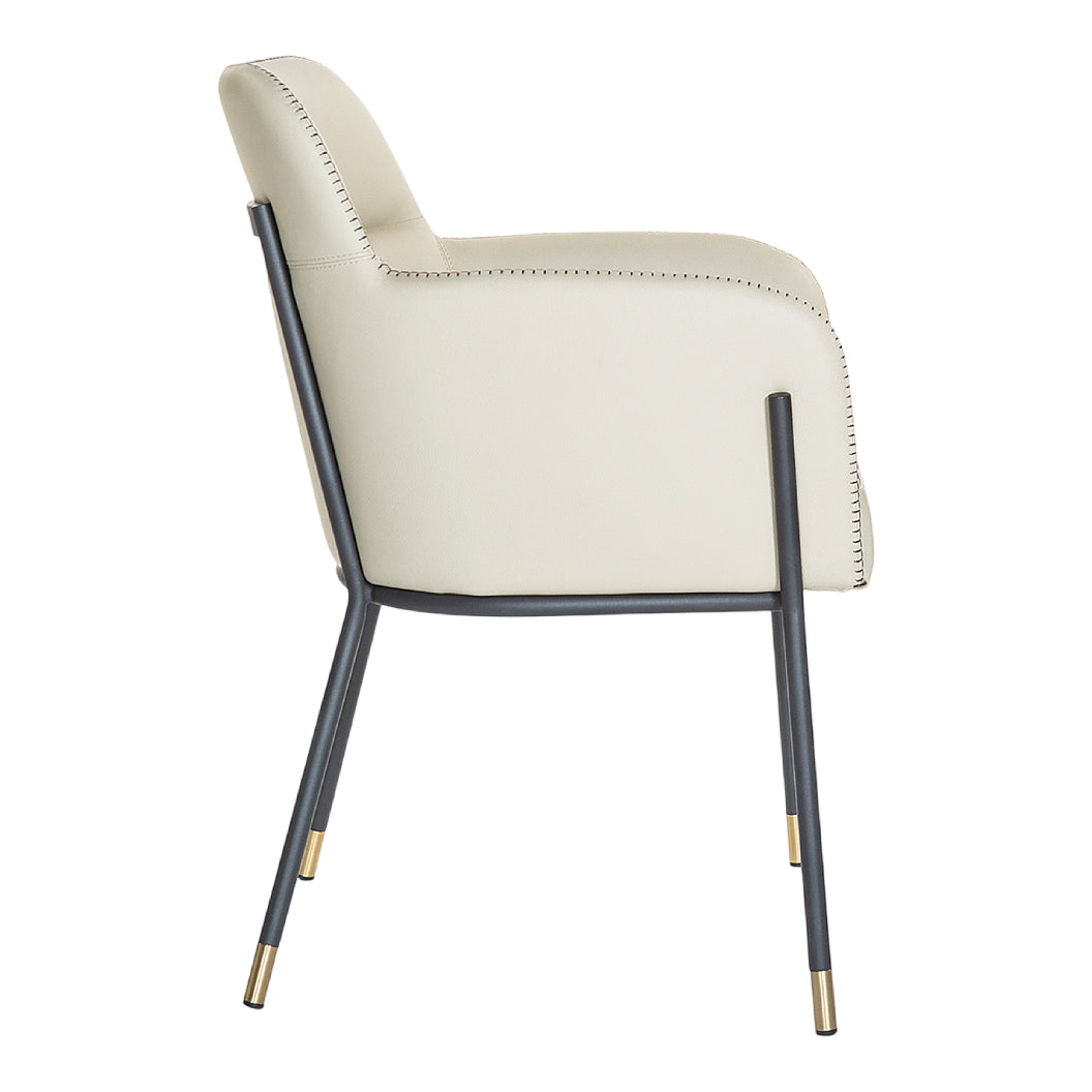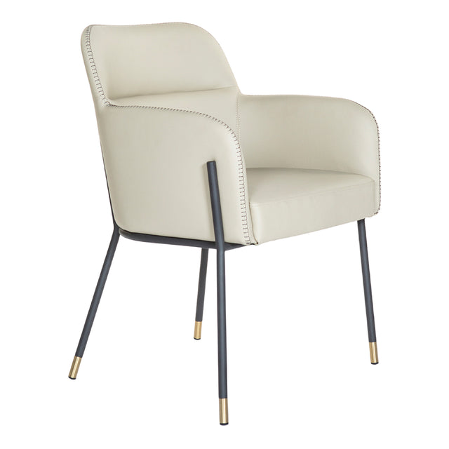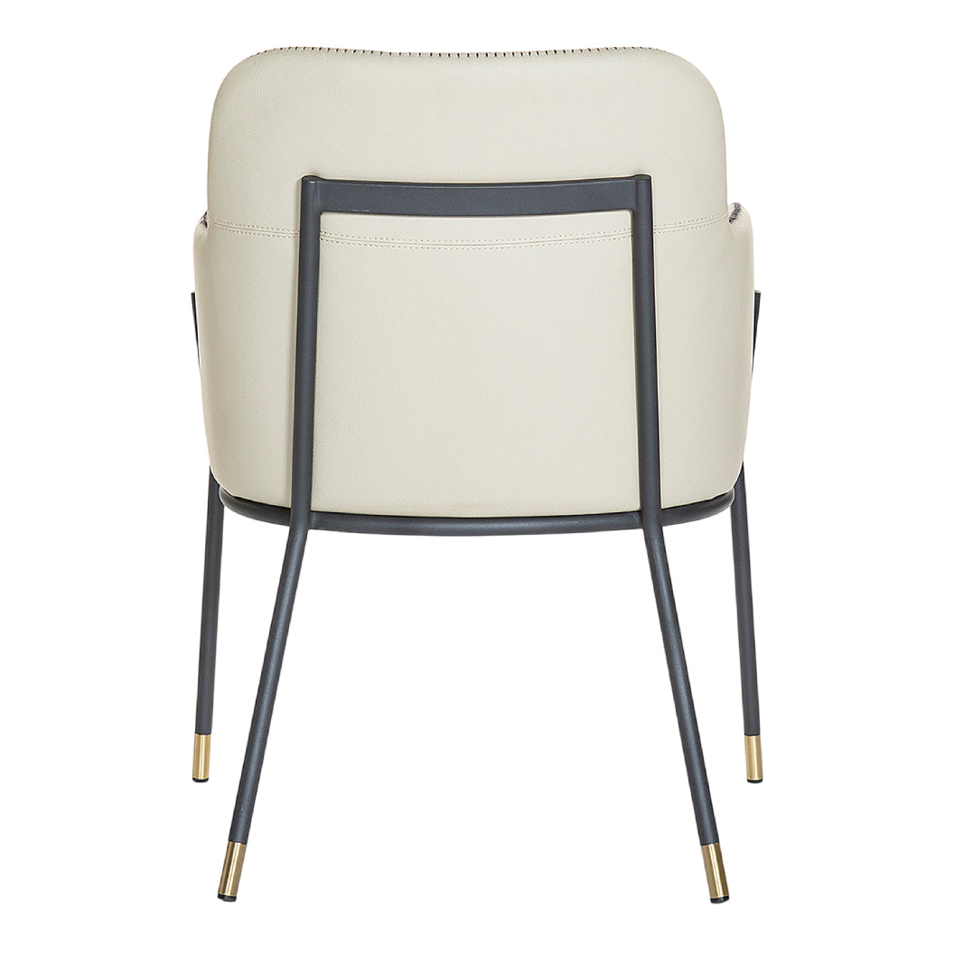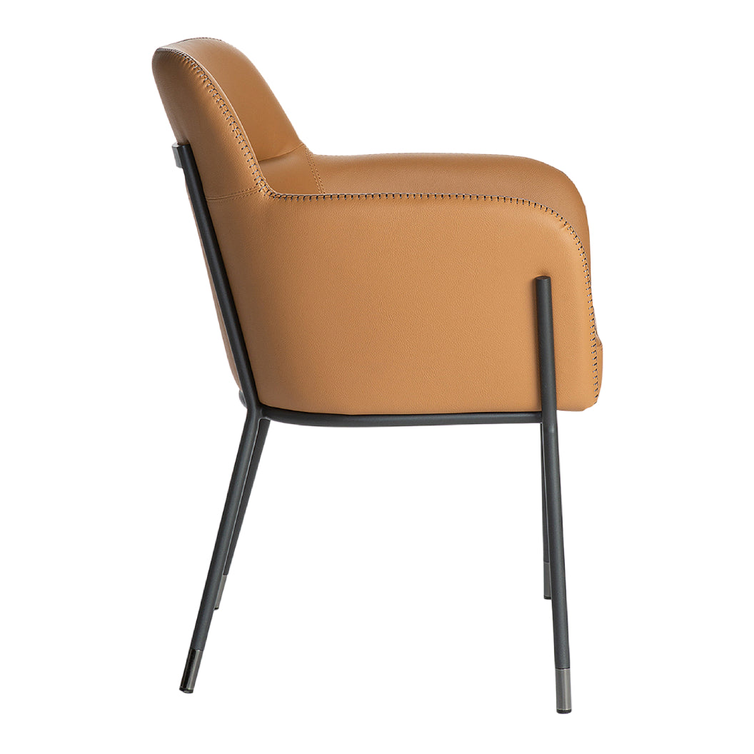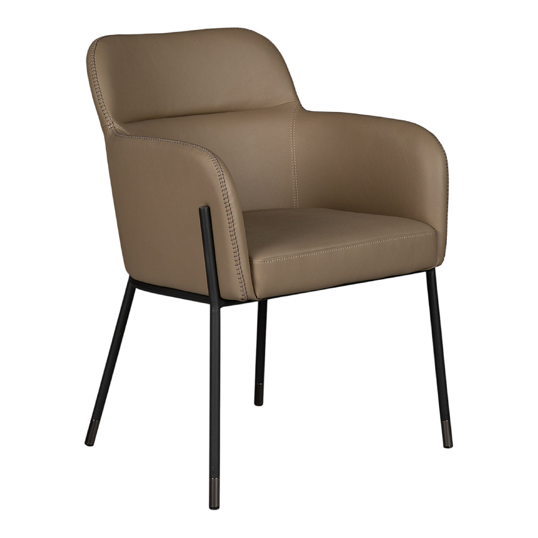 La chaise de salle à manger Teresa de Colibri se distingue par son design contemporain et ses lignes élégantes. Son assise rembourrée en cuir écologique (PU) offre confort et durabilité, tandis que ses accoudoirs rembourrés apportent un soutien supplémentaire. Les coutures raffinées qui longent son bord ajoutent une touche de caractère, faisant de Teresa un choix idéal pour rehausser l’esthétique d’une salle à manger moderne. Ses pieds en métal noir assurent à la fois stabilité et allure sophistiquée.