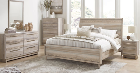 Lit complet en bois et placage brun clair avec 6 tiroirs Hyanna - Grand / Très grand