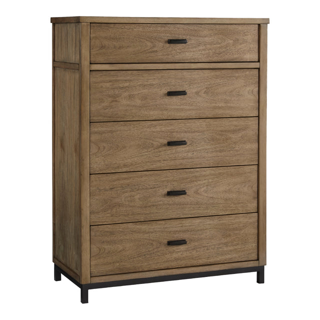 Commode à 5 tiroirs en bois brun clair - Tomtyn