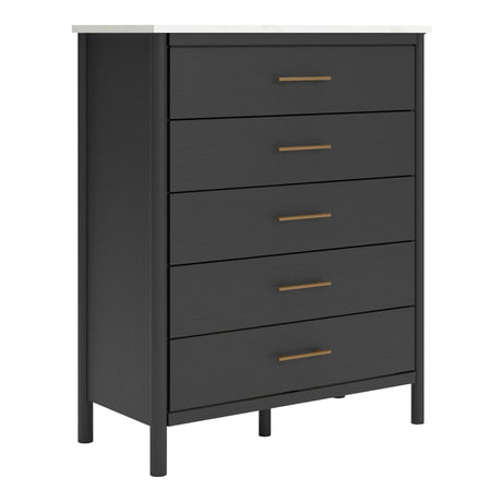 Commode à 5 tiroirs en marbre blanc et bois noir - Cadmori