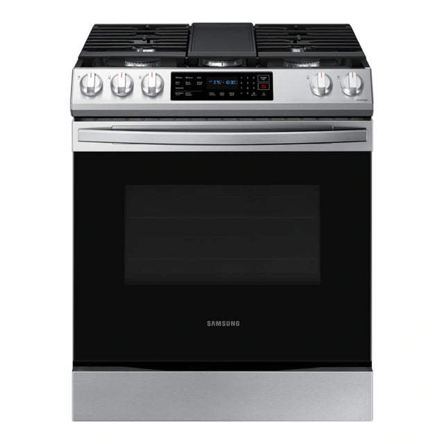 Cette cuisinière encastrable au gaz de 30 po NX60T8311SS/AA de Samsung offre un équilibre idéal entre performance, style moderne et technologies intelligentes. Avec sa grande capacité de 6,0 pi³, ses grilles en fonte bord à bord et son système de convection à ventilateur, elle permet de cuisiner plus rapidement, plus uniformément et avec une flexibilité remarquable. Son design intégré s’insère parfaitement entre les armoires pour un look épuré, tandis que la connectivité Wi‑Fi et la commande vocale simplifient le quotidien.