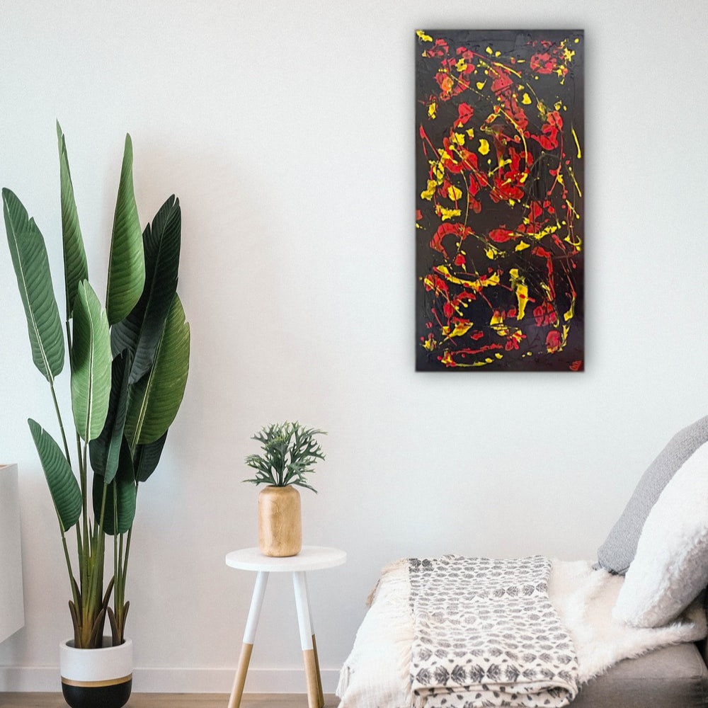 Offerte exclusivement en magasin, la toile Volcano est une création puissante de l’artiste québécoise Valérie “VaVa” Rochette. Par son mélange de rouges et de jaunes projetés en mouvement, cette œuvre évoque l’intensité du feu et de la lave en fusion. Elle insuffle énergie, chaleur et dynamisme à tout espace, en devenant rapidement un point focal captivant dans un décor contemporain.