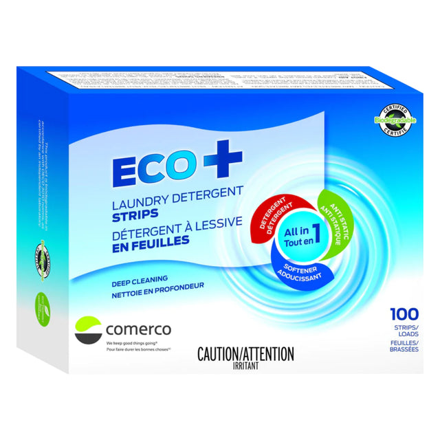 Le détergent à lessive en feuilles ECO+ Comerco® 3313.12001 révolutionne l’entretien du linge avec une formule ultra concentrée, tout-en-un, qui allie efficacité et praticité. Fini les liquides encombrants, les dosettes ou les poudres salissantes : chaque feuille offre un dosage précis et une solution complète pour 100 brassées, sans gaspillage ni résidus. Facile à utiliser, à transporter et à ranger, ce format convient parfaitement à tous les types de laveuses, même à haute efficacité.