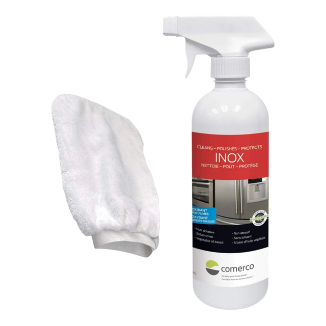 Préservez l’élégance de vos électroménagers et surfaces en acier inoxydable avec l’Ensemble d’entretien INOX de Comerco®. Ce coffret contient deux indispensables : un poli de 500 ml à triple action (nettoie, polit, protège) et un gant applicateur en fibres extra douces. La formule non abrasive, sans solvant et à base d’huile végétale élimine efficacement les traces de doigts, les marques d’eau et laisse un fini brillant sans résidu. Le gant lavable à la machine facilite l’application du produit sur toutes les surfaces. Une solution simple, efficace et respectueuse de l’environnement pour un entretien durable de vos appareils inox.