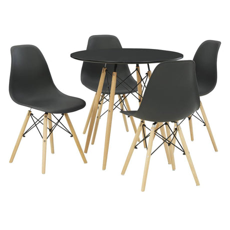 Ensemble de salle à manger avec 4 chaises en plastique moulé noir - Jaspeni