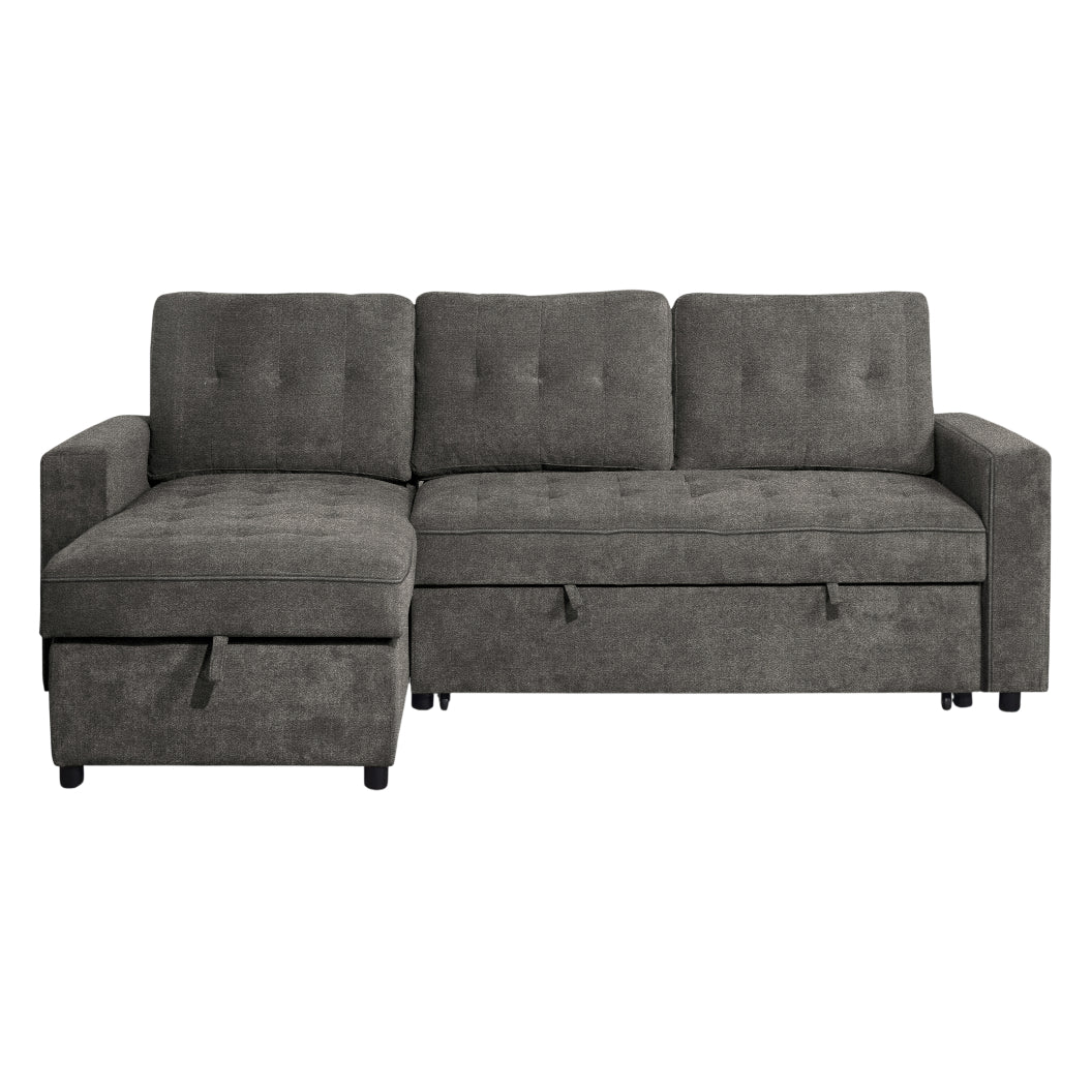 Sofa-lit en tissu gris avec chaise longue à rangement - Dale