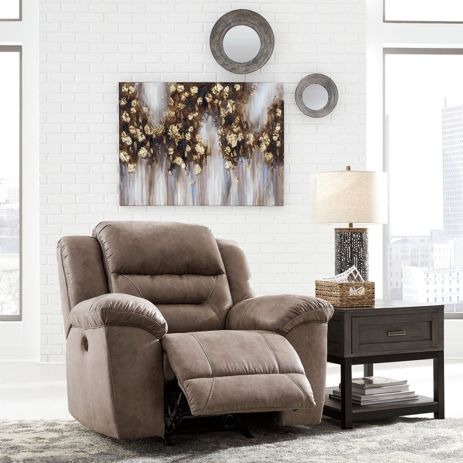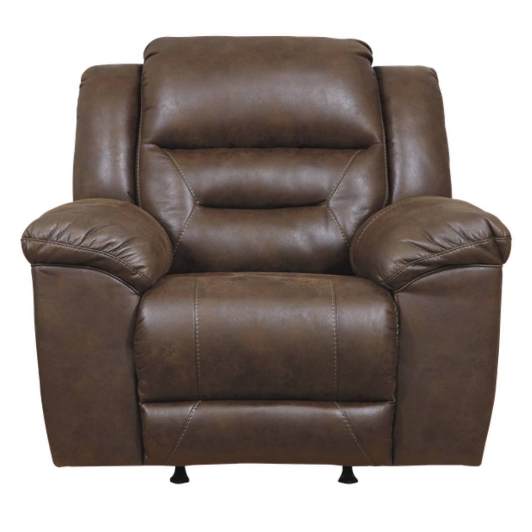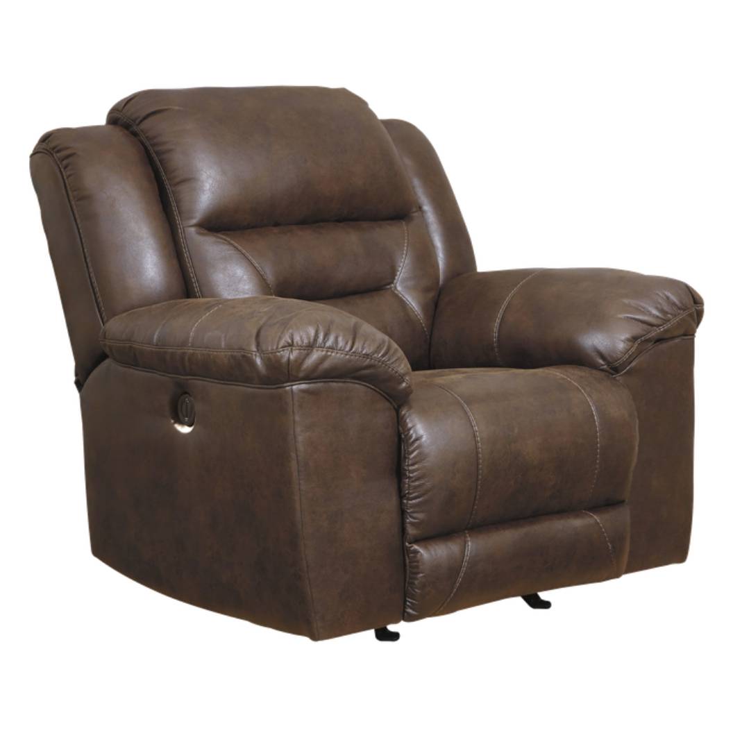 Ce fauteuil Stoneland 3990498C/3990598C de Ashley a un revêtement en aspect cuir rembourré haute performance, il évoque le style sophistiqué du cuir tout en offrant la chaleur et la douceur du tissu. Ce fauteuil inclinable à bascule électrique permet, d’un simple appui sur un bouton, de trouver la position idéale pour se relaxer. Son dossier cousu en forme de U soutient parfaitement les lombaires, apportant une assise ergonomique et accueillante.