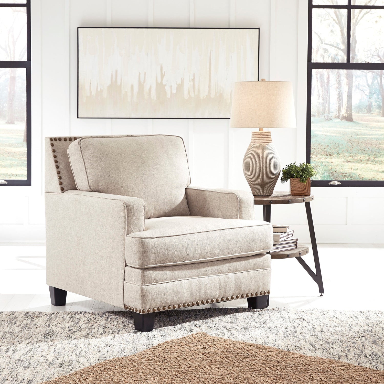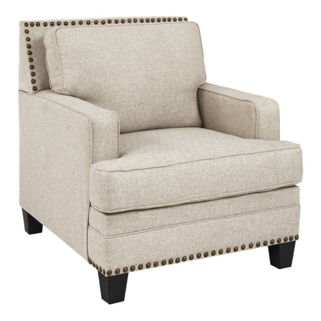 Fauteuil en tissu beige effet lin avec garniture cloutée - Claredon