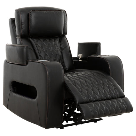 Fauteuil motorisé en cuir noir avec rangement - Colton