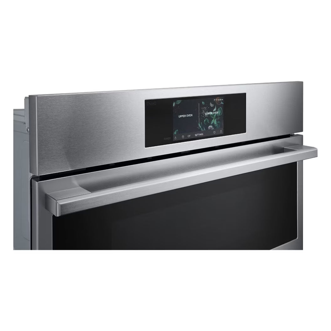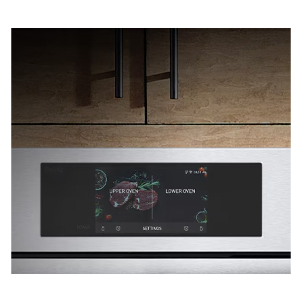 Le four mural double combiné LG STUDIO WCES6428F allie performance professionnelle et polyvalence pour répondre aux exigences des cuisiniers les plus exigeants. Avec sa capacité totale de 6,3 pi³, il permet de préparer simultanément plusieurs plats tout en garantissant une cuisson uniforme grâce à la technologie True Convection®. Sa fonction TurboCook™ Speed Oven réduit considérablement les temps de cuisson, tandis que l’option Air Fry offre des repas croustillants avec moins d’huile. Son design en acier inoxydable résistant aux traces de doigts et son écran tactile couleur de 7 po apportent modernité et confort d’utilisation à votre cuisine.