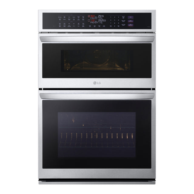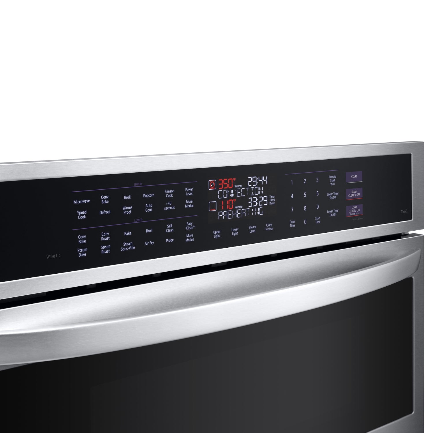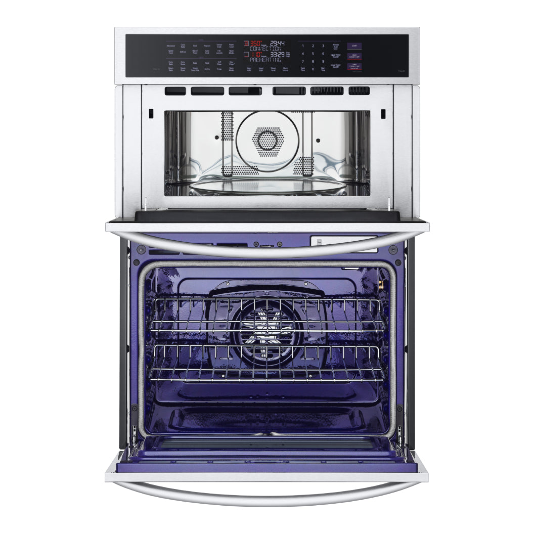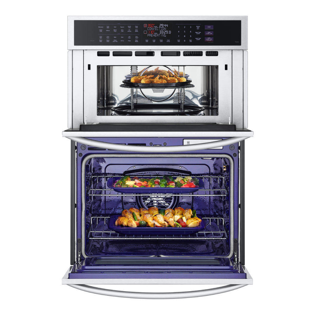 Le four encastrable combiné intelligent 30 po. WCEP6427F de LG a une conception intégrée avec finition PrintProofMD résistante aux taches s'harmonise parfaitement avec un environnement haut de gamme. Grâce à sa double cavité (1,7/4,7 pi³), il permet une grande flexibilité : utilisez la section supérieure comme micro-ondes rapide ou four de convection secondaire, et la cavité principale pour les plats plus volumineux. La fenêtre InstaViewMD permet de surveiller la cuisson sans ouvrir la porte.