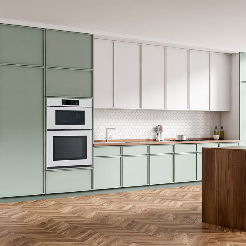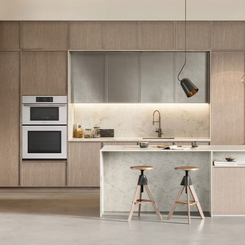 Le four mural BESPOKE se distingue par son design épuré et ses lignes modernes, parfaites pour les cuisines contemporaines. Sa porte sans poignée à ouverture par pression renforce l’esthétique minimaliste tout en offrant une manipulation fluide et intuitive.