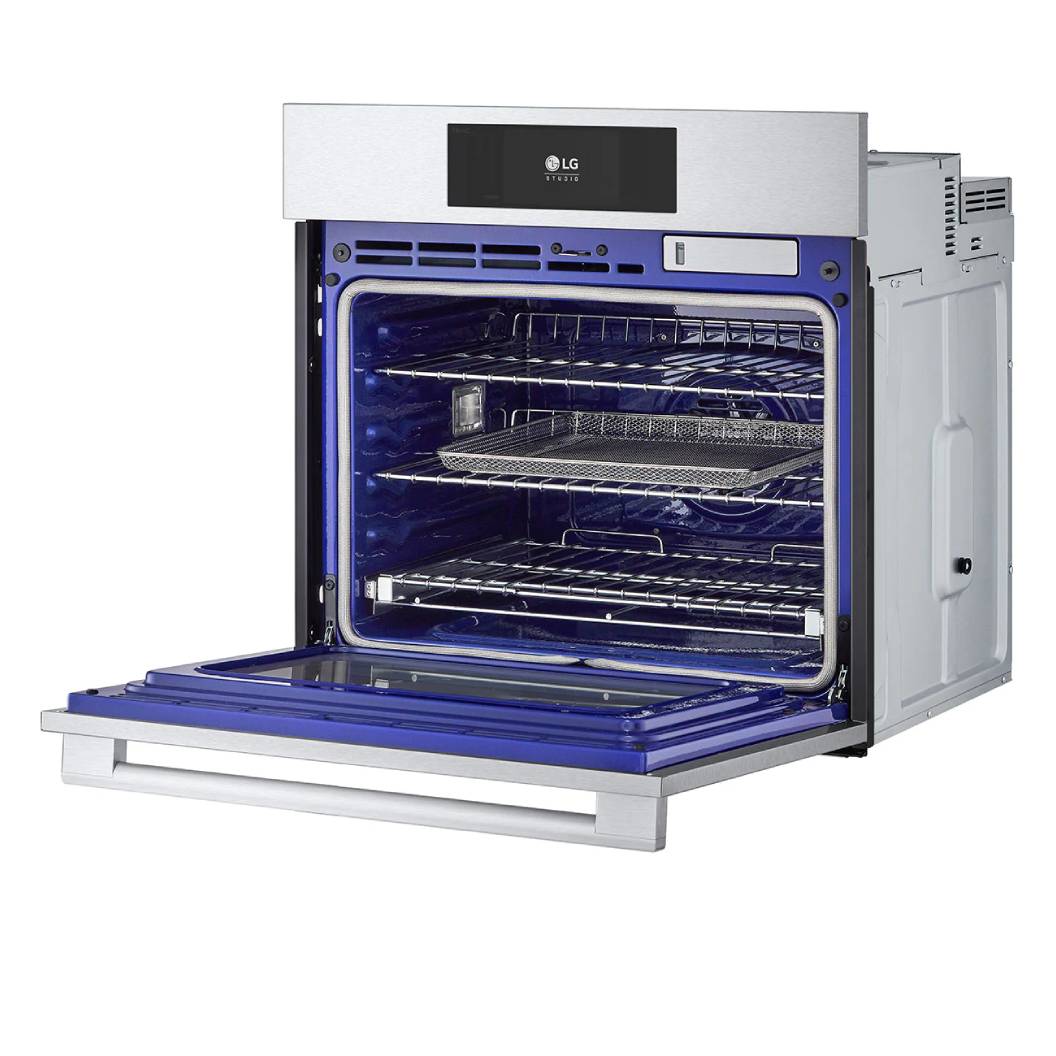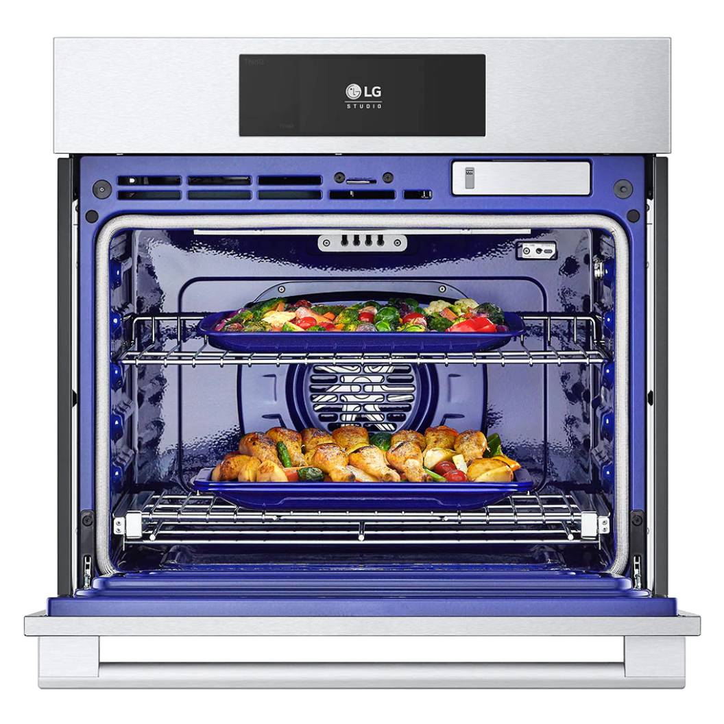 Le four LG STUDIO est conçu pour répondre aux besoins des cuisiniers les plus exigeants grâce à un ensemble de technologies innovantes. La fenêtre InstaView®, extra large et activée par deux simples frappes, permet de surveiller la cuisson sans ouvrir la porte, préservant ainsi chaleur et efficacité énergétique. Idéal pour les repas de famille, ce modèle propose une grande capacité qui permet de tout cuire, des plaques de biscuits aux rôtis festifs.
