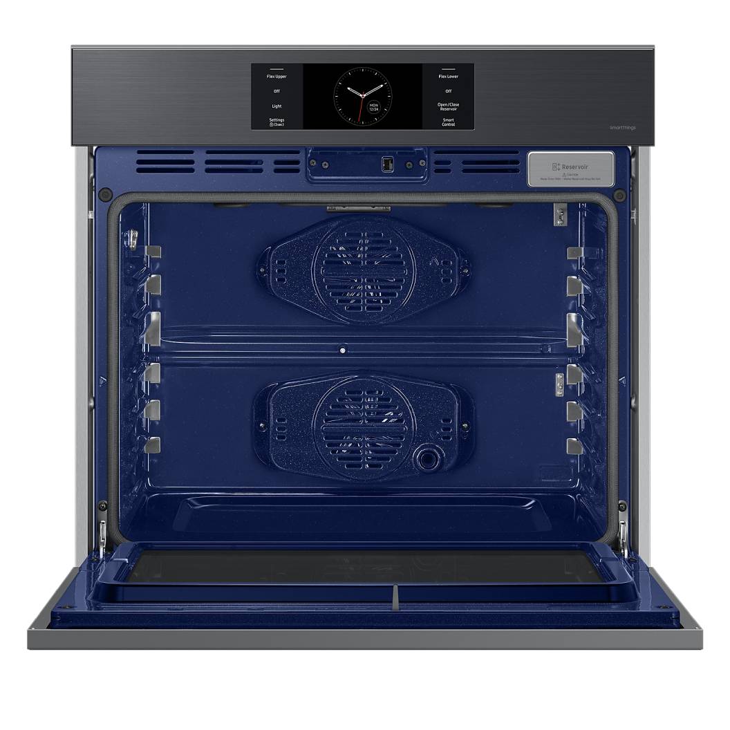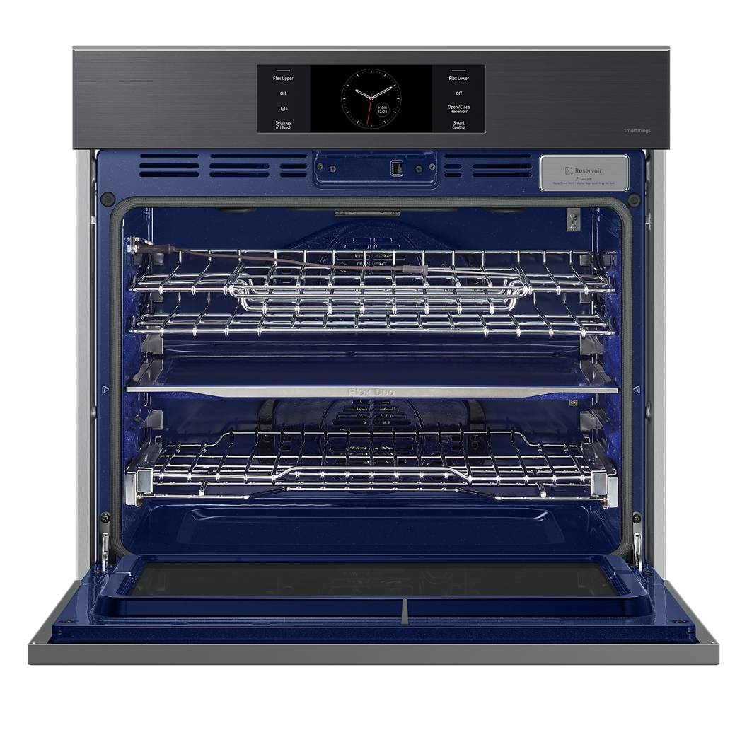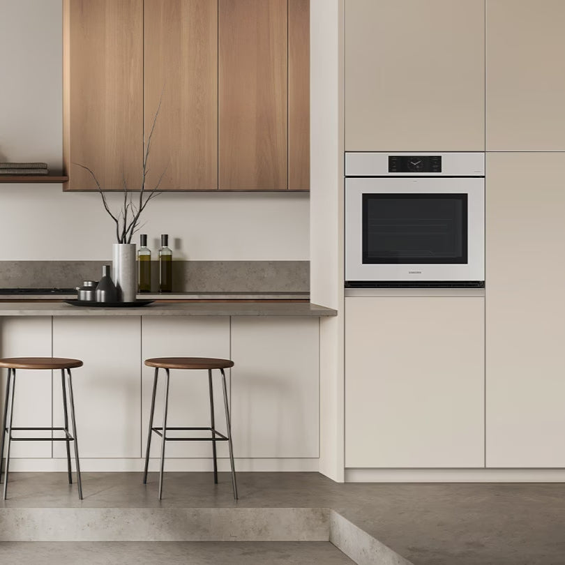 La porte sans poignée à pression donne une touche de modernité et de fluidité au design de votre cuisine. Le système Flex Duo™, avec double convection et séparateur amovible, permet de transformer un seul four en deux cavités indépendantes, idéales pour cuisiner plusieurs plats en même temps. Grâce au mode Air Fry intégré, vous profitez d’une cuisson croustillante sans huile, sans encombrer votre comptoir. Enfin, la connectivité SmartThings vous donne le contrôle total du four à distance, où que vous soyez.