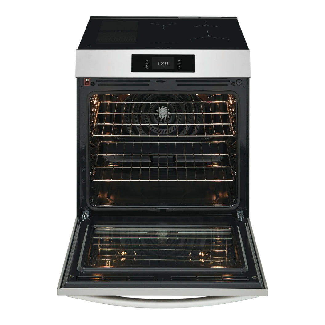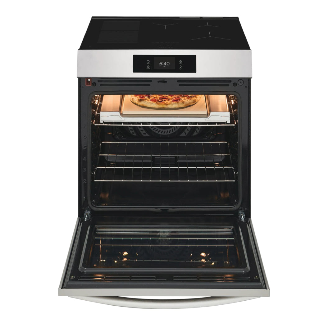La cuisinière à induction encastrable option pizza de Frigidaire Gallery modèle GCFI307CBF de 30 po propose une performance de cuisson avancée dans un format moderne et épuré en acier inoxydable. Grâce à sa surface de cuisson lisse à induction, elle chauffe rapidement, de façon précise et sécuritaire, tout en demeurant facile à nettoyer. Dotée d’un grand four de 6,2 pi³, cette cuisinière à commande frontale est idéale pour les repas familiaux et les cuissons multiples. Offrant une pierre à pizza incluse ainsi qu’un large éventail de fonctions spécialisées, elle répond aux attentes des passionnés de cuisine, tout en s’intégrant parfaitement aux cuisines contemporaines.