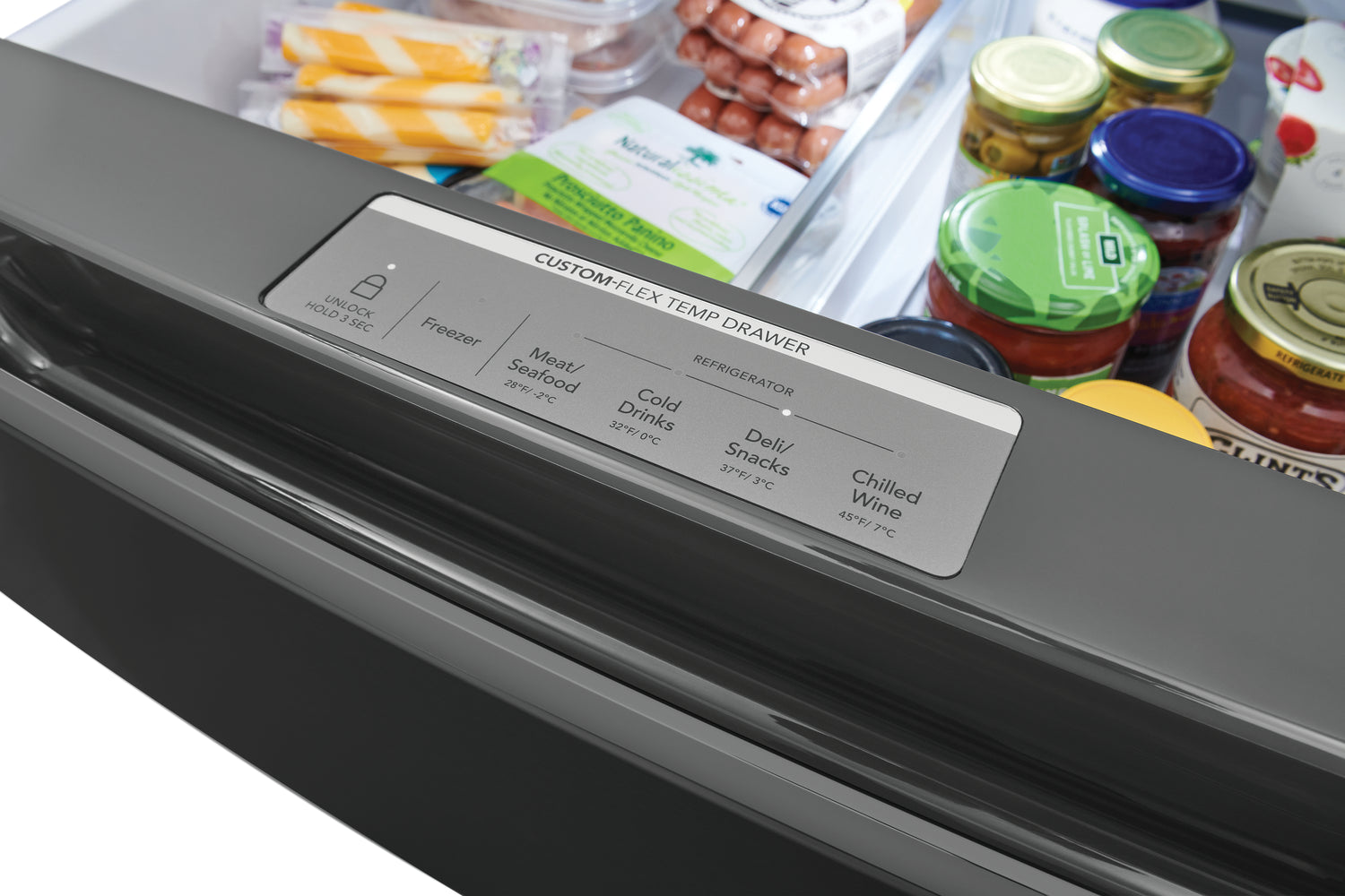 Obtenez plus d'espace pour tous vos articles courants. Rangez le yogourt, la bière ou même les pizzas congelées avec le tiroir du milieu qui peut être soit n réfrigérateur, soit un congélateur.