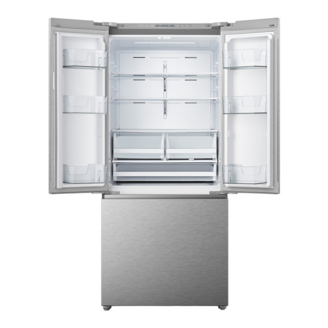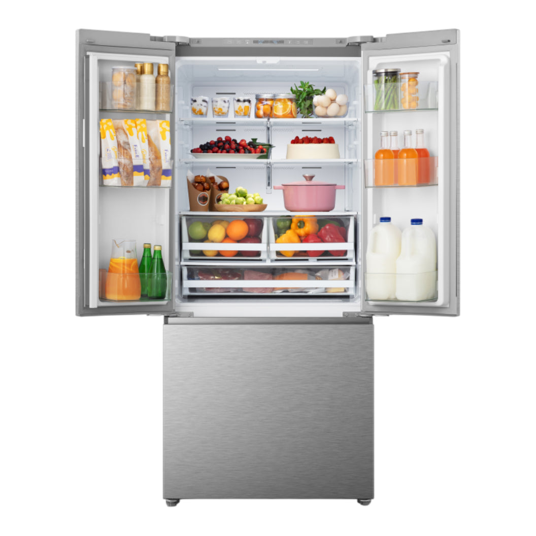 Le réfrigérateur à porte française Hisense RF210N6ASE s’impose comme une solution raffinée pour les espaces restreints. Mesurant moins de 67 pouces de hauteur et seulement 30 pouces de largeur, il est parfaitement adapté aux cuisines de petite ou moyenne taille tout en offrant une généreuse capacité de 20,8 pi³. Sa finition en acier inoxydable résistant aux empreintes et sa poignée encastrée assurent une intégration harmonieuse dans tous les styles de décor. Conçu pour maximiser le rangement, il dispose d’un tiroir garde-manger pleine largeur, de bacs de porte spacieux pour contenants d’un gallon, et d’étagères anti-déversement en verre pour une organisation sans effort.